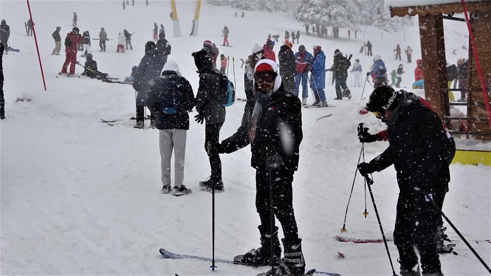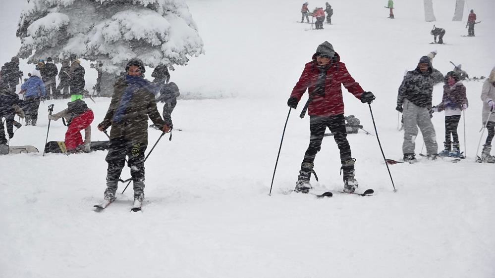 İl kez Uludağ’a geldiklerini ifade eden vatandaşlar, ‘Uludağ çok güzel sezonun ilk karını burada görüyoruz. Bol bol kayak yaptık. Yoğunluk var pistler çok kalabalık’ dedi. (İHA)