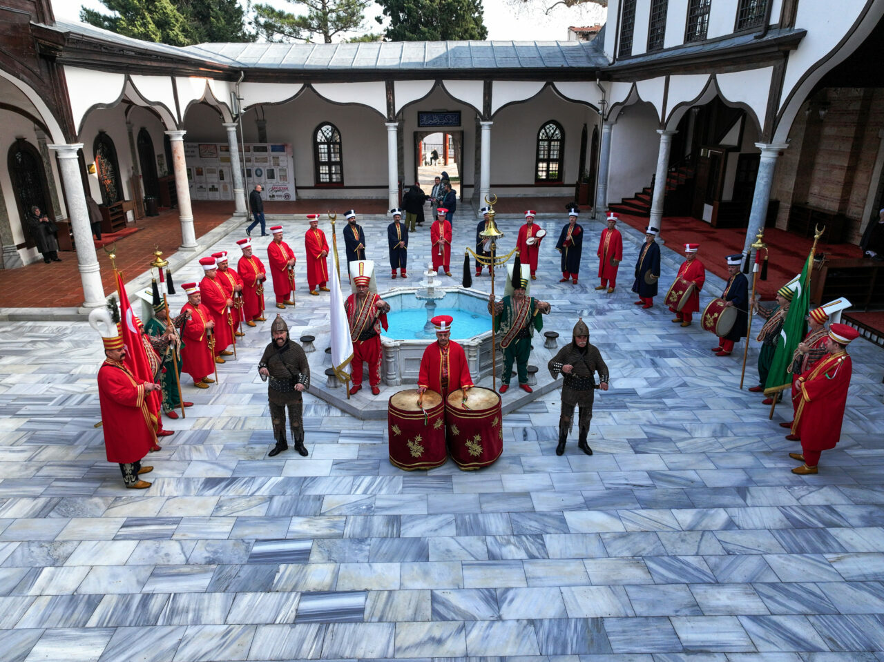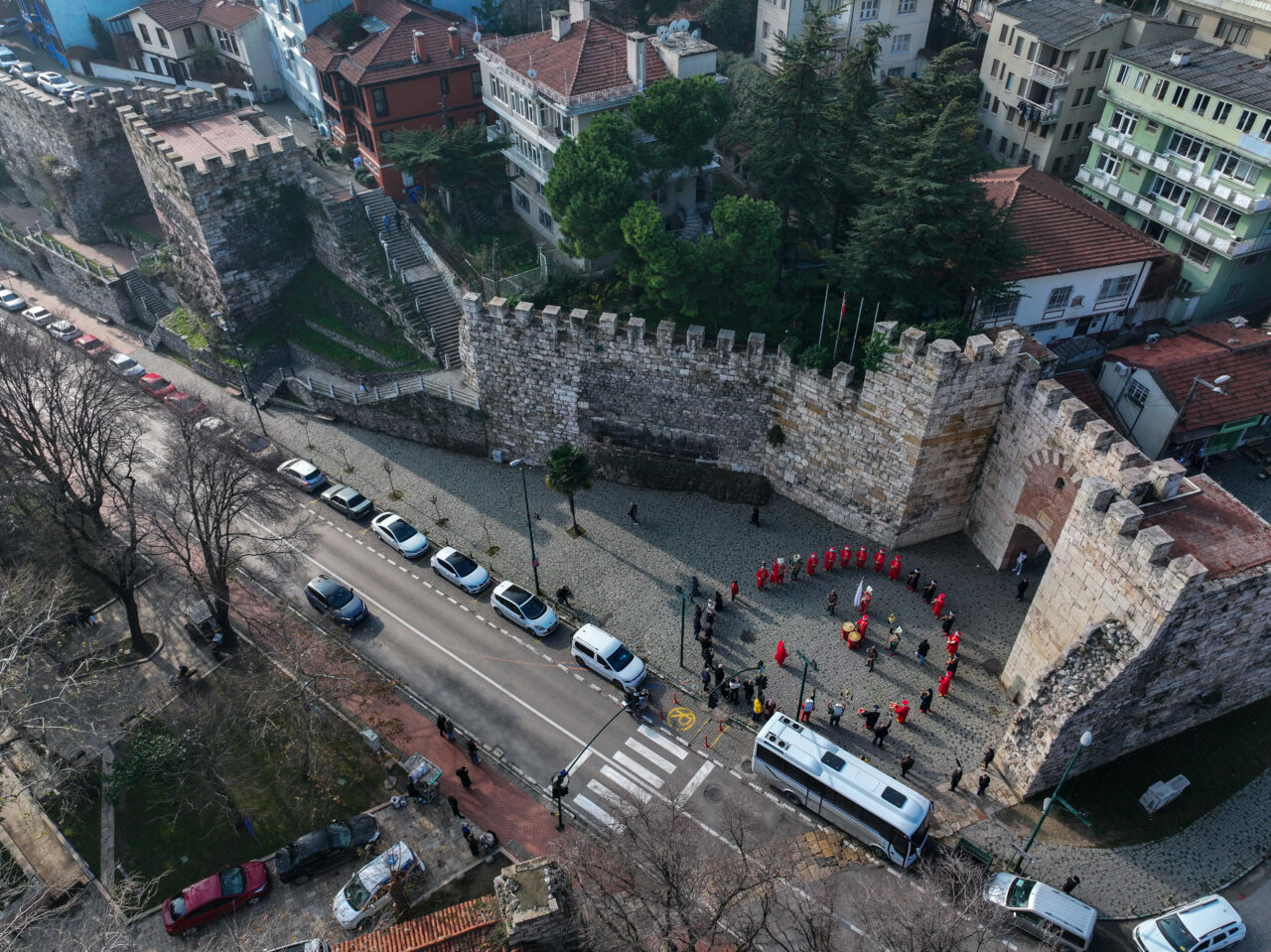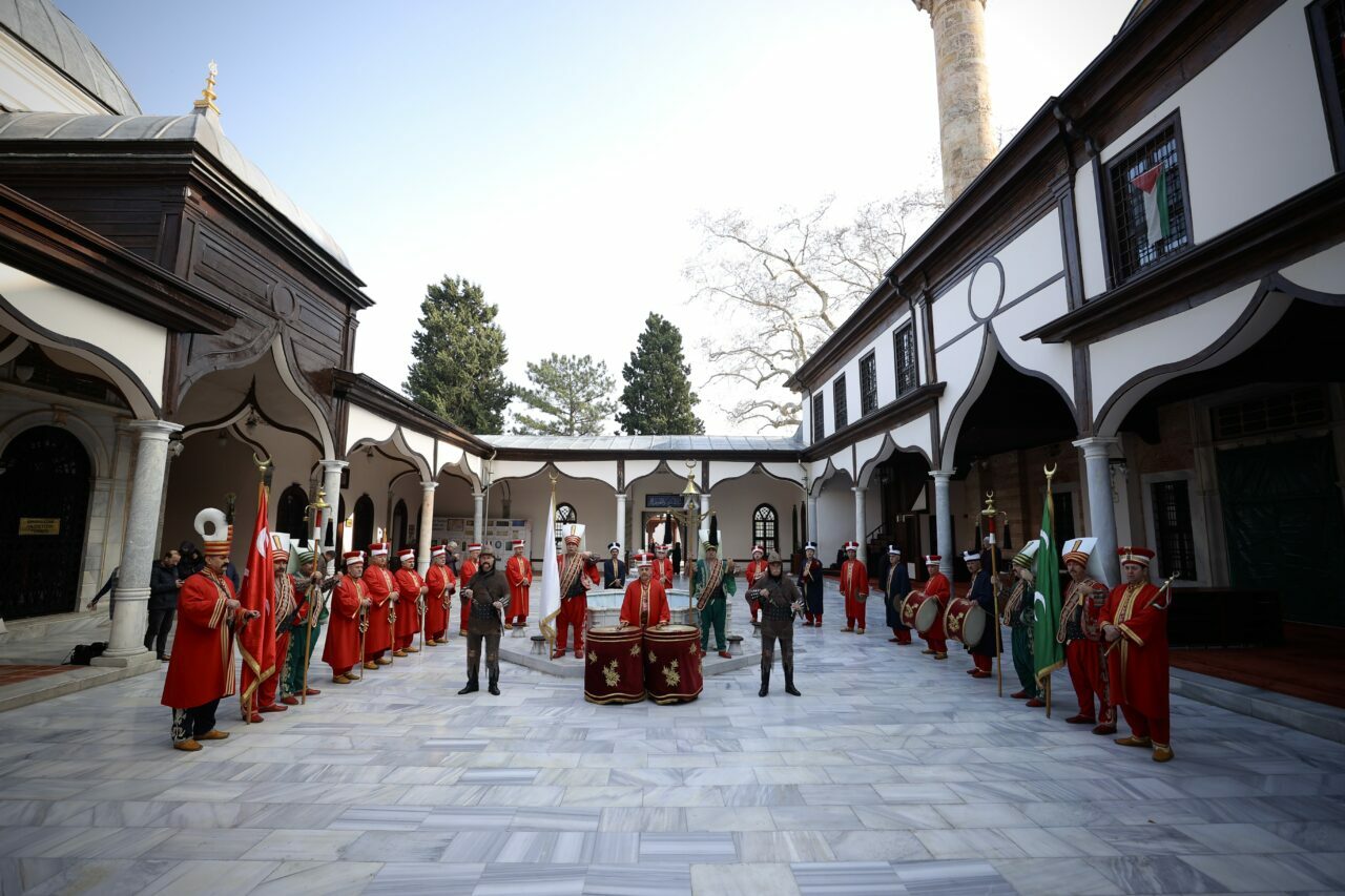 Bursa Mehter Takımı’nın, Saltanat Kapı, Tophane Parkı, Emir Sultan Camisi gibi tarihi ve turistik yerlerde yaptığı gösteriler dronla da görüntülendi.