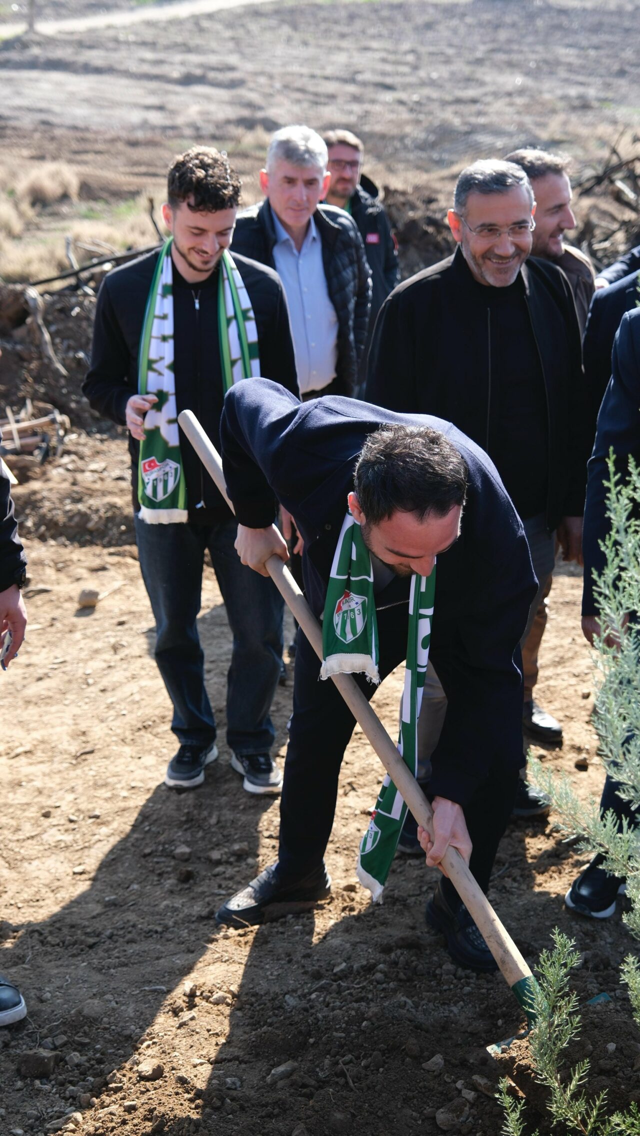 Bursaspor Kulübü Başkanı Enes Çelik, teknik direktör Tahsin Tam, yeşil beyazlı futbolcular ile Uludağ Organize Sanayi yönetici ve iş insanları, Karahıdır ve İğdir bölgesinde yanan ormanlık alanlarda fidan dikimi gerçekleştirdi.