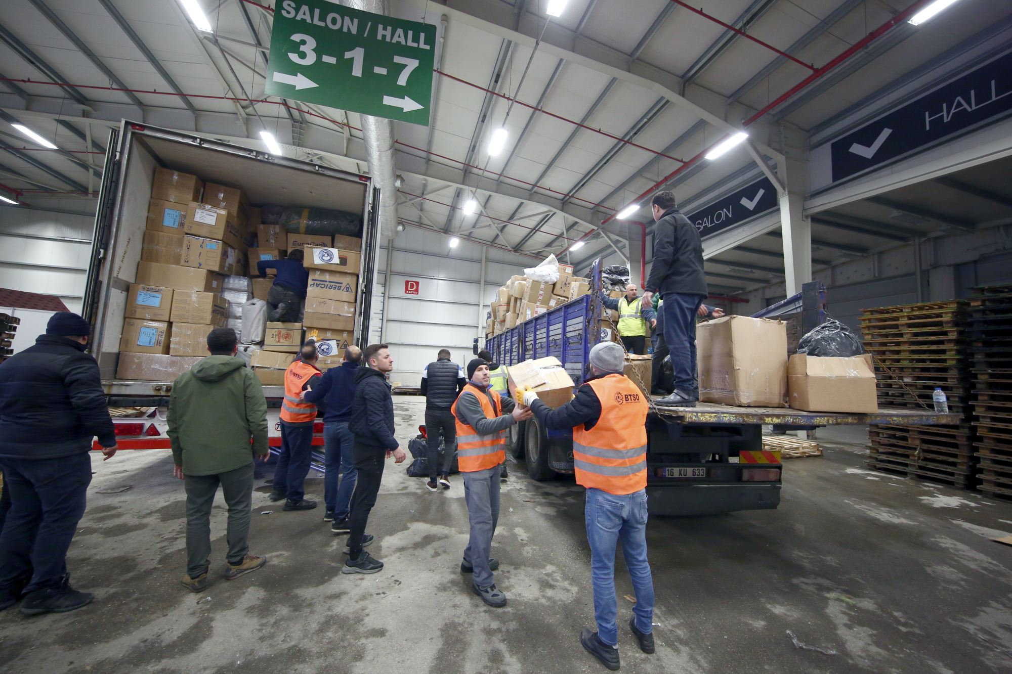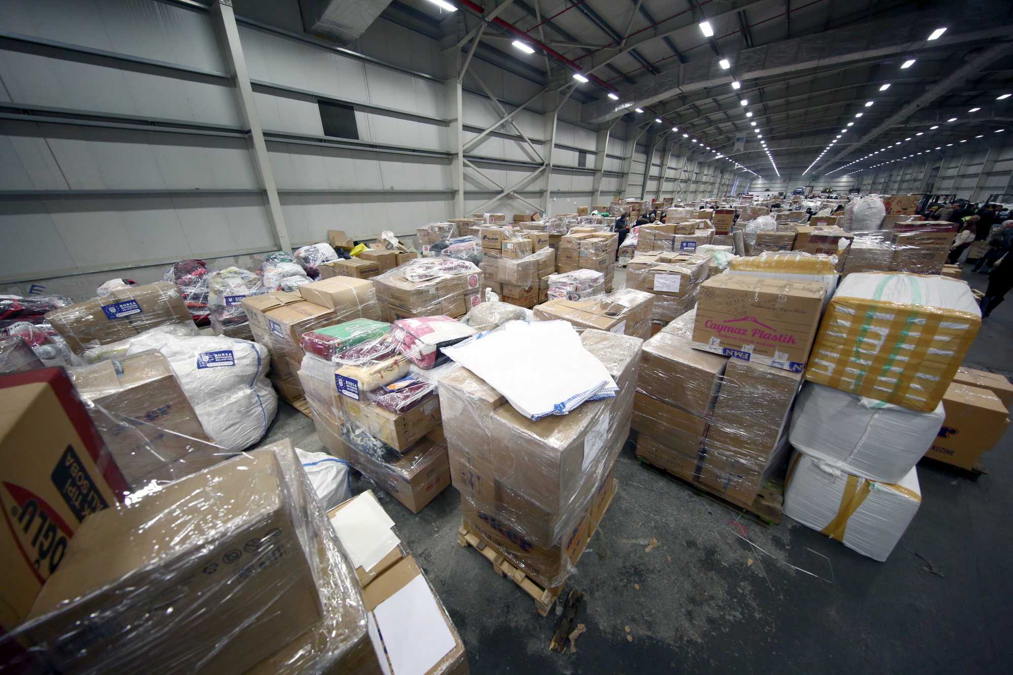 Türlerine göre özenle kolilere doldurulan yardımlar, daha sonra TIR’lara yüklenip afet bölgesine yollanıyor.
