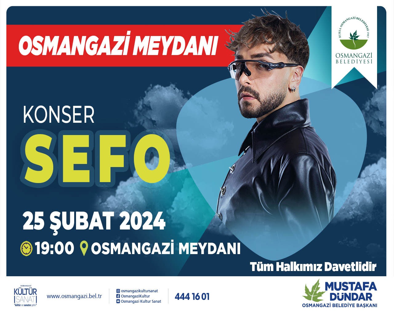 Önümüzdeki günlerde açılışı yapılarak vatandaşların hizmetine sunulacak olan dev meydan, Türk Rap müziğinin son dönemdeki parlayan yıldızı Sefo, konserine ev sahipliği yapacak. Binlerce Bursalı, bugün saat 19.00’da düzenlenecek konser için Osmangazi Meydanı’ndaki yerini alacak. En sevilen şarkılarını Bursalılar için seslendirecek olan Sefo, sahne şovları ile hayranlarına unutulmaz bir gece yaşatacak.