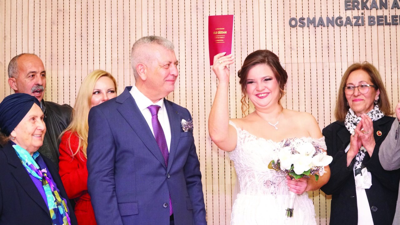 Çift salona büyük alkışlar eşliğinde giriş yaptı. Nikâhı Osmangazi Belediye Başkanı Erkan Aydın kıydı. Nikâha başlamadan önce konuşma yapan Başkan Aydın, Osmangazi Gösteri Merkezi ve Nikâh Evi’nde kıyılan ilk nikâh olduğunu belirterek, “10 küsür yıldır çalışma arkadaşımız, her türlü koşuşturmada bize yardımcı olmuş Mutlu abimize ve yine partimiz için çalışmış Ece hanıma mutluluklar diliyorum” dedi.