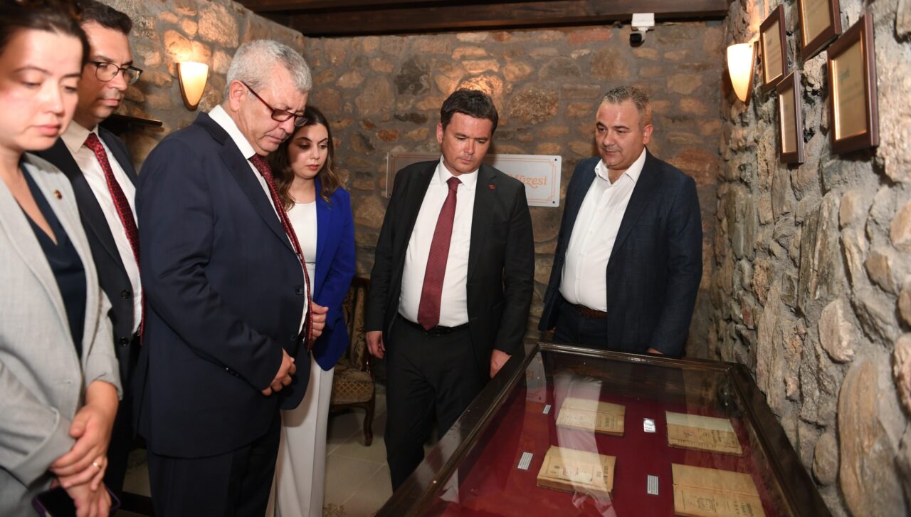 Zamansız Kitaplar Müzesi’nin açılışının ardından Başkan Erkan Aydın ve protokol üyeleri müzeyi gezdi.
