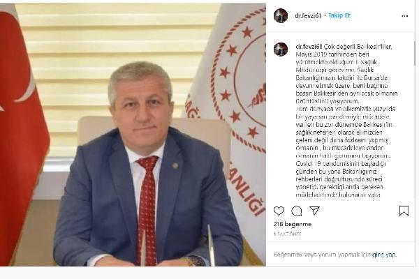 Yavuzyılmaz, Bursa İl Sağlık Müdürlüğü’ne atandığını sosyal medyada yaptığı paylaşımla duyurdu.