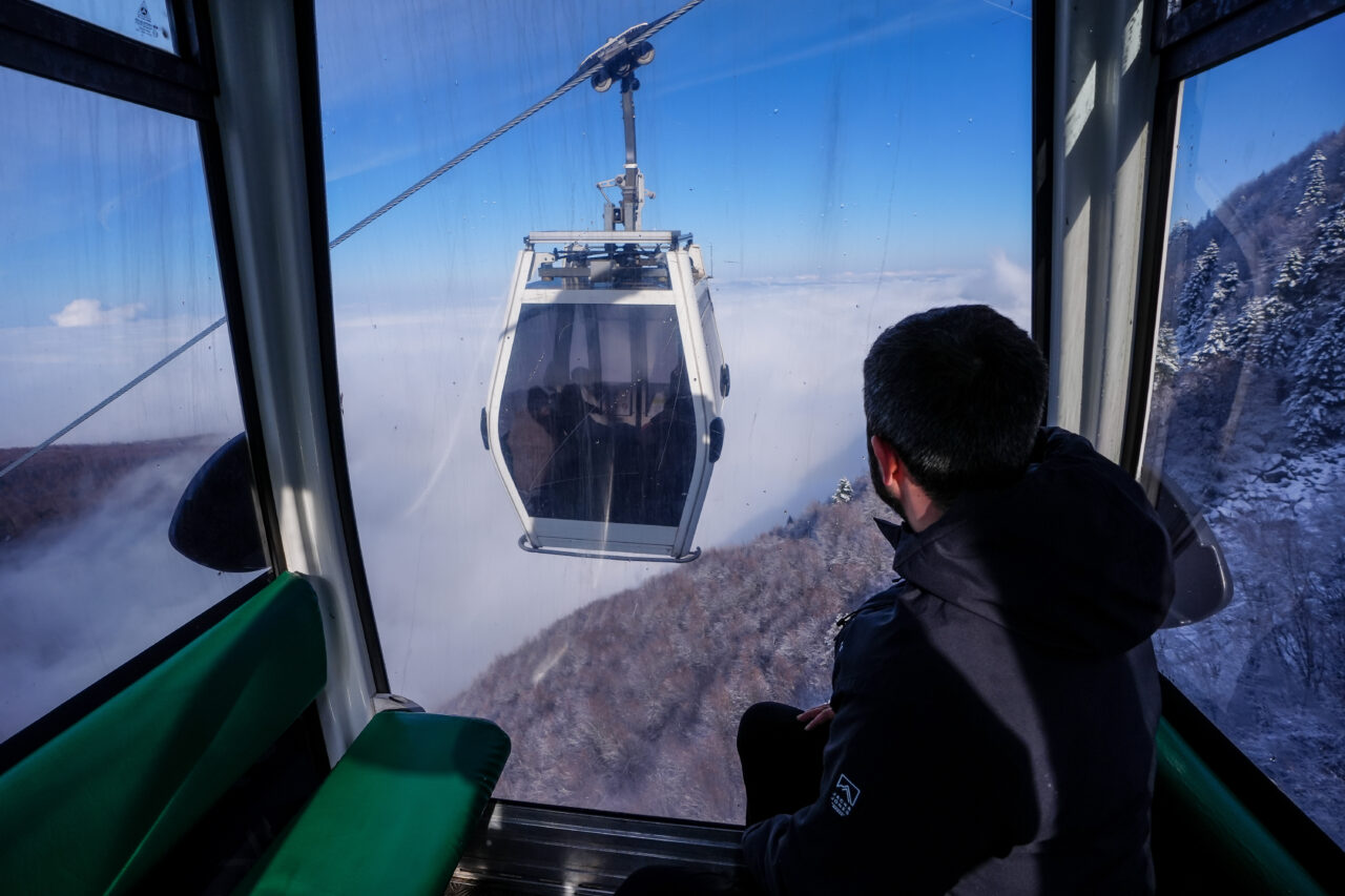 Ey, Uludağ yolunda araç trafiğinin zaman zaman yoğunlaştığını ve gidişin 2,5 saati bulduğunu anlatarak, “Teleferikle 22 dakikada Uludağ’a çıkılıyor. Teleferikle çıkmak çok farklı ve keyifli. Özellikle çocuklar çok seviyor. Doğanın tam da ‘buradayım’ dediği yer. Teleferikte yeşille başlayan yolculuk Uludağ’da beyazla sonlanıyor.” ifadelerini kullandı.