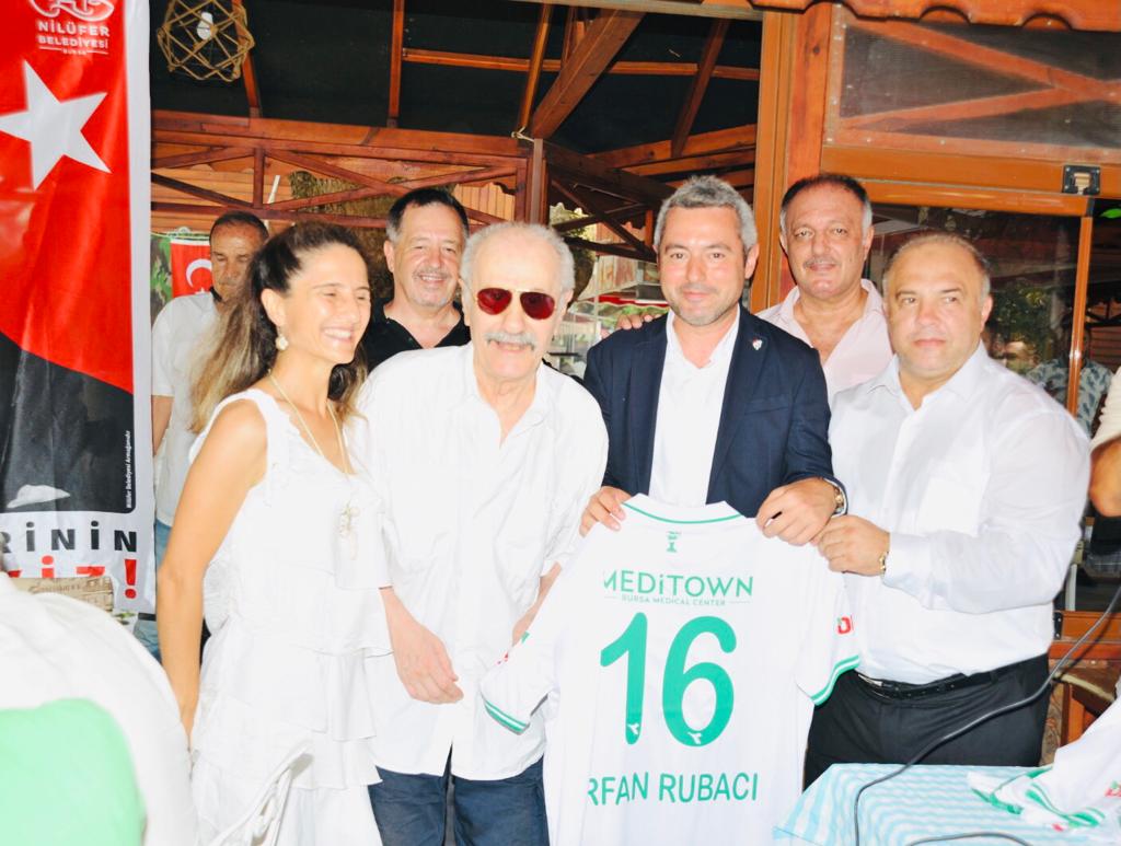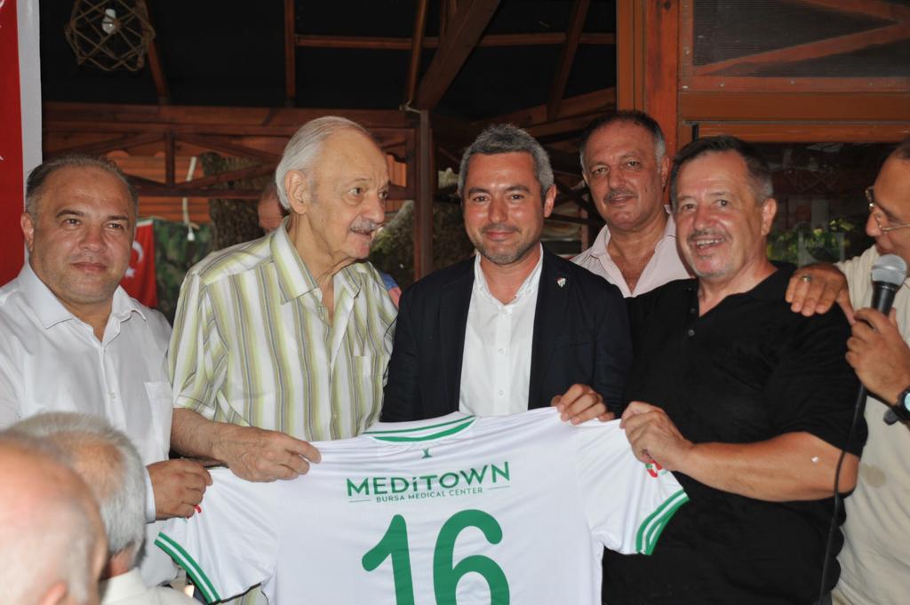 Bursaspor Kulübü Başkanı Ömer Furkan Banaz efsanelerle bir araya geldiği etkinlikte, Müfit Gürsu, İbrahim Akan, İrfan Rubacı, Haluk Erdem, Vahit Doğan, Sedat Özden, Kemal Batmaz, Özmetin Erkut, Mehmet Vahap Çeki, Baykul Tüysüz, Suat Sütman, Orhan Kırıkçılar’a isimlerinin yazılı olduğu formaları hediye etti. Başkan Banaz hem Bursasporlu, hem de eski kramponları Özlüce İbrahim Yazıcı Tesisleri’nde konuk etmek istedikleri söyledi.