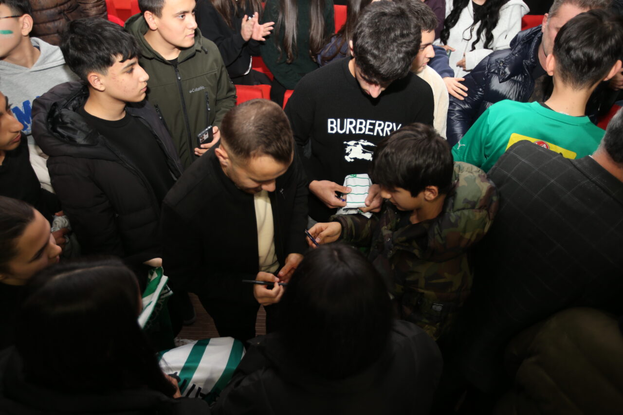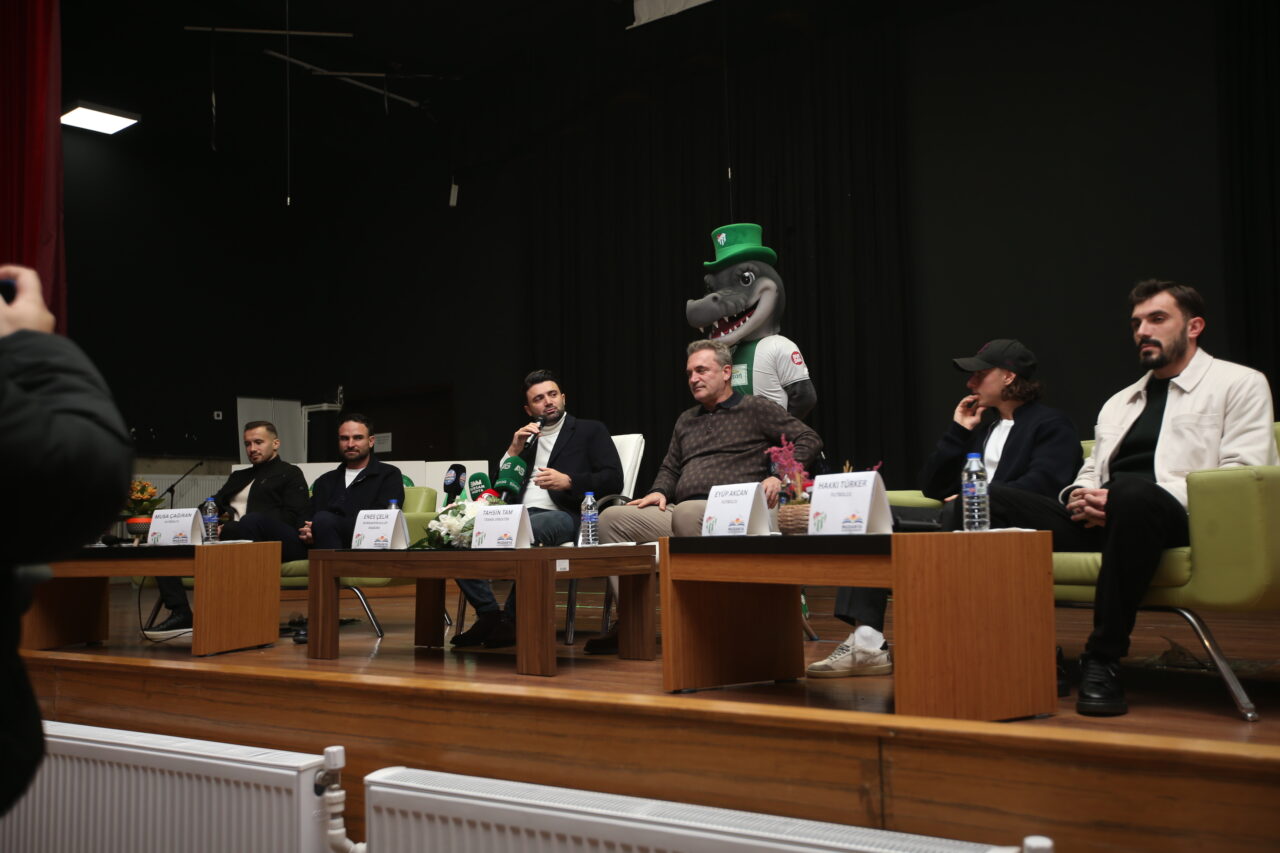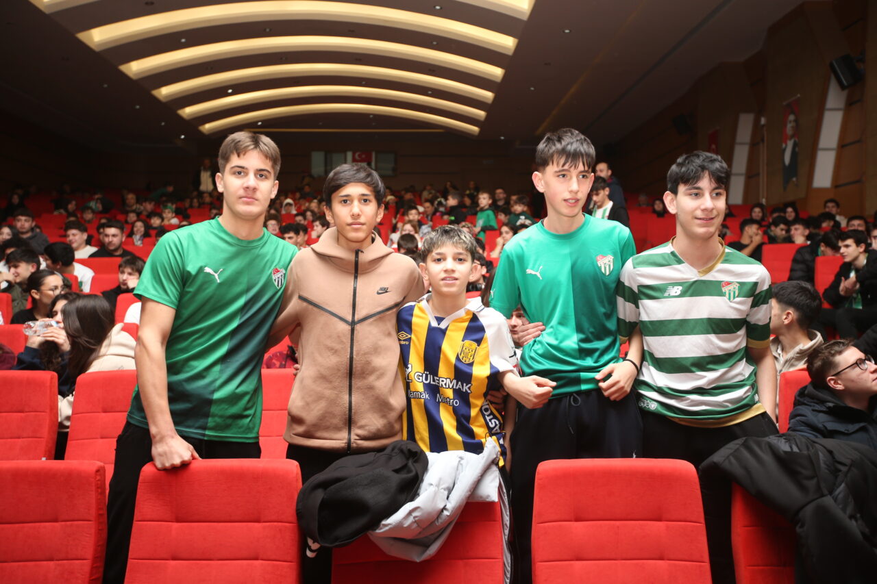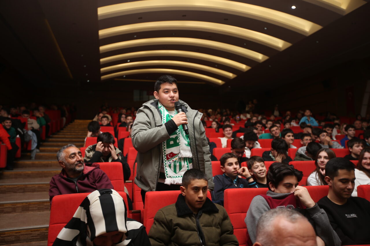 Futbolcular Musa Çağıran, Talha Yünkuş, Eyüp Akcan ve Hakkı Türker de Bursaspor’da çok özel bir hikaye yazıldığının altını çizdi. Yeşil beyazlı oyuncular oluşturdukları atmosfer için öğrencilere teşekkür ederken, öğrenciler de merak ettikleri soruları Başkan Çelik, Teknik Direktör Tam ve futbolculara sordu. Yaklaşık bir saat süren etkinlik sonrasında öğrenciler Bursaspor heyetine büyük ilgi gösterirken, imza ve fotoğraf alabilmek için birbirleriyle yarıştı. Mudanya İlçe Milli Eğitim Müdürü Suat Topal, Enes Çelik’e Türk bayrağı hediye etti.