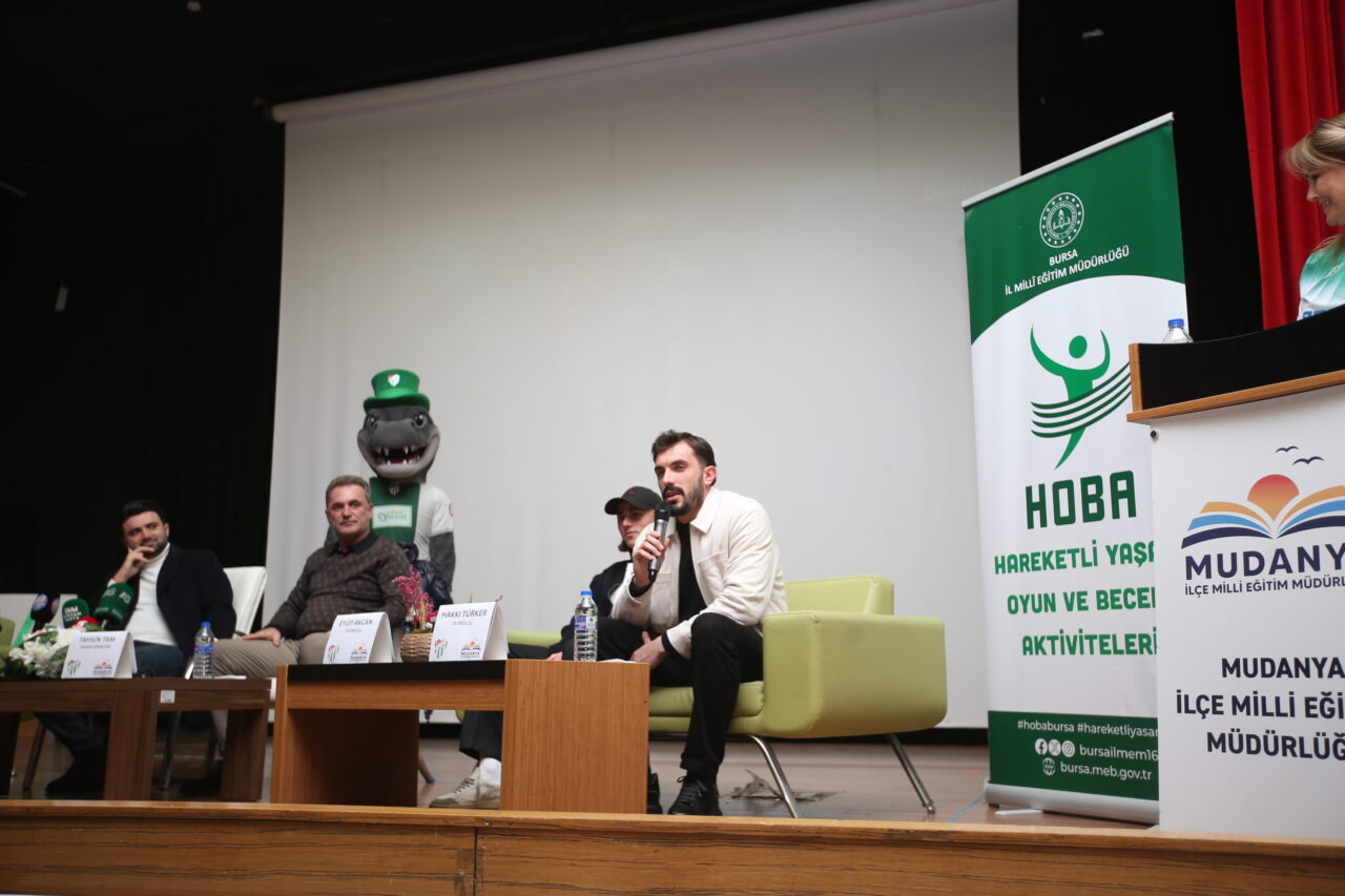 HOBA (Hareketli Yaşam, Oyun ve Beceri Aktiviteleri Projesi) kapsamında Mudanya İlçe Milli Eğitim Müdürlüğü’nün organize ettiği ‘Yeşil Koltuk’ etkinliğinde Bursaspor Başkanı Enes Çelik, Teknik Direktör Tahsin Tam ile futbolcular Musa Çağıran, Hakkı Türker, Eyüp Akcan ve Talha Yünkuş öğrenciler ile bir araya geldi. Mudanya İlçe Milli Eğitim Müdürlüğü binasında gerçekleşen etkinlikte konuşan Başkan Enes Çelik, Bursa’daki gençlerin artık Bursasporlu olacağını söyledi.