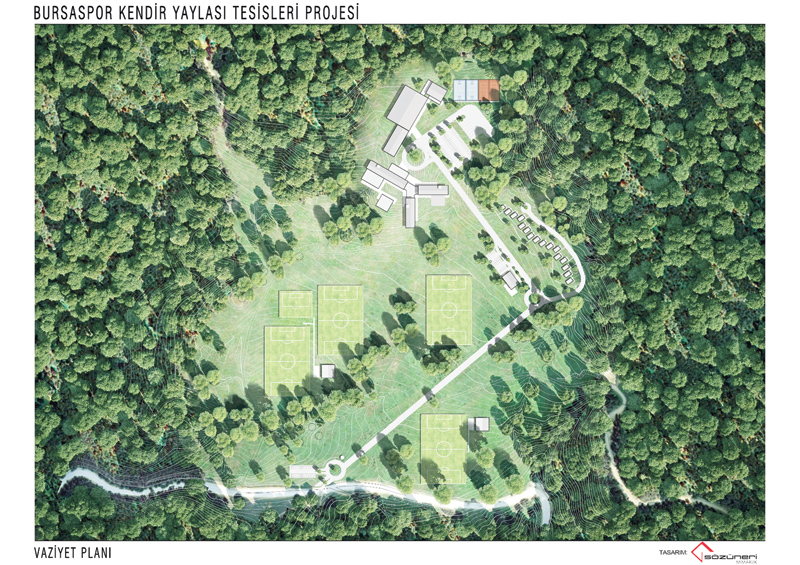 4 mevsim ve futbolun yanı sıra tüm spor branşlarının kullanılabileceği tesisin tanıtımı yapılan projesinde, dağ ve yöresel mimarilerin izlerini taşıyan, farklı takımların aynı anda kalabildiği, içinde 3 koldan yerleşimin olduğu, 110 odanın bulunduğu, 4 dünya standartlarında antrenman sahası, kapalı çift kortlu spor salonu, spa, yarı olimpik kapalı yüzme havuzu ve Bursa’nın plakasını çağrıştıran rakamından yola çıkarak 16 bungalov evinin olduğu açık alanlarda alternatif sporların yapılabildiği bir tesis planlanmıştı.