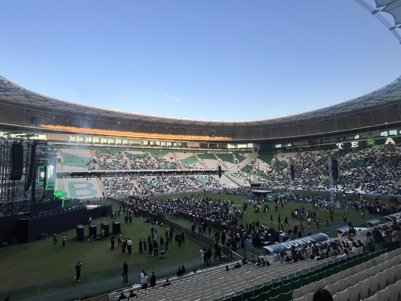 Yeşil beyazlı futbolcular konser öncesi Bursaspor’un yeni sezon forma tanıtımında yerini aldı.