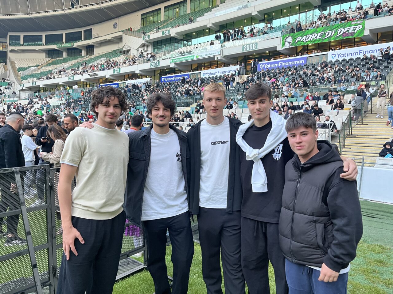 Atatürk Spor Kompleksi Matlı Stadı’nda gerçekleşecek Mahmut Orhan konseri için Bursasporlu futbolculardan Taha Can Velioğlu, İlhan Depe, Musa Çağıran, Muhammet Demir, Furkan Emre Ünver, Kerem Matışlı, Emir Kayacık, Mehmet Çetin sahadaki yerlerini aldı.