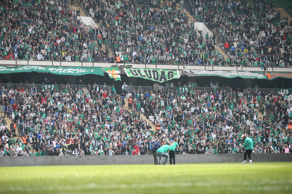 Bursasporlu taraftarlar yine tezahürat ve görsel şovlarla takımlarına büyük destek verdi.