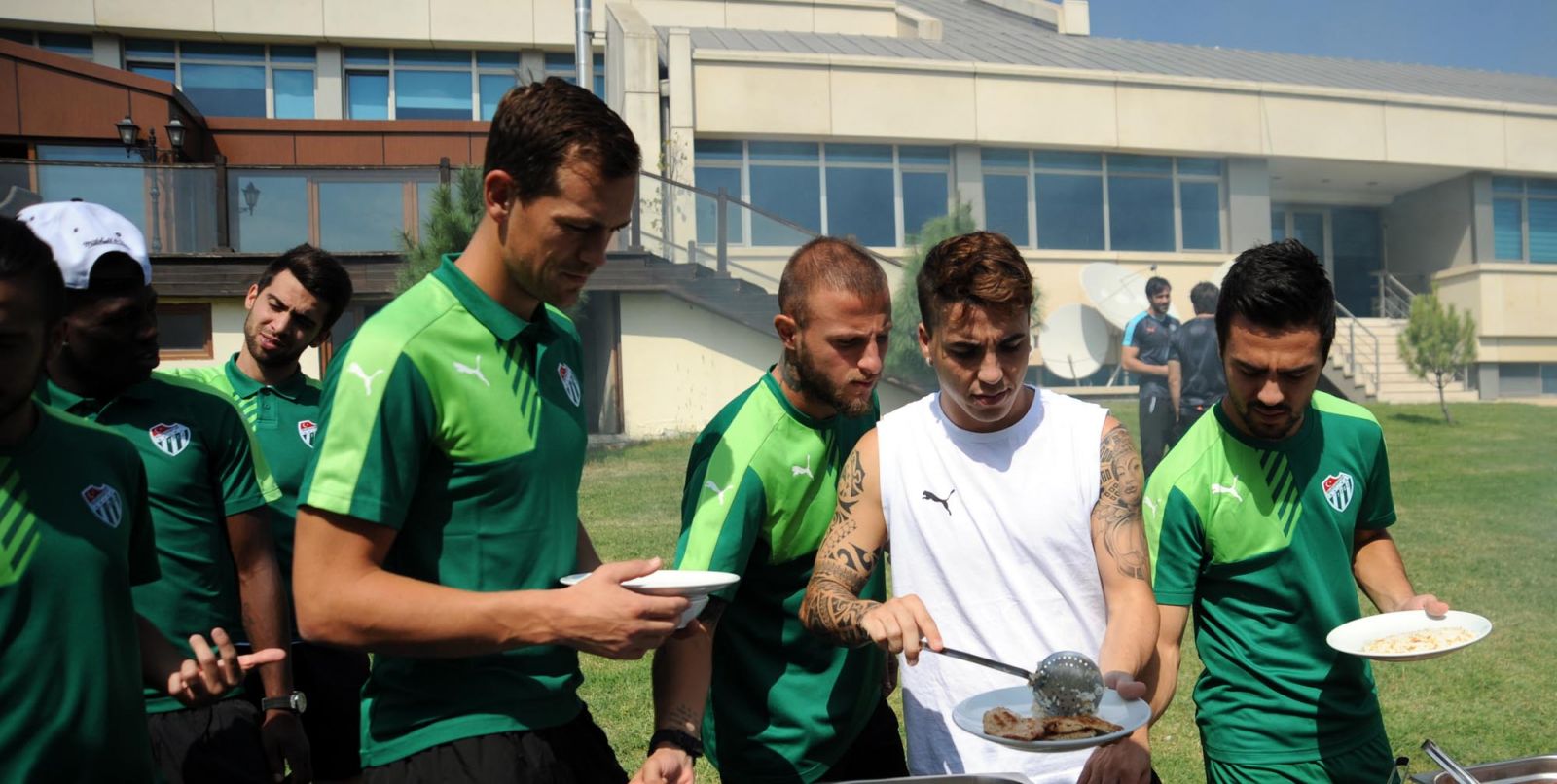Antrenmanın ardından Özlüce Tesisleri’ne gelen futbolcular öğle yemeğinde bir araya geldi. Saha kenarında yapılan barbeküye Başkan Recep Bölükbaşı, futbol şube sorumlusu Necmettin Kocaman, yatırımlardan sorumlu asbaşkan Faruk Bakgör ve başkan danışmanı Mesut Mestan da katıldı. Barbekünün ardından yeşil-beyazlılar, akşamüzeri Özlüce Tesisleri’nden İstanbul’a hareket edecek. İstanbul’da kamp yapacağı otele yerleşecek olan kafile maç saatini beklemeye başlayacak.