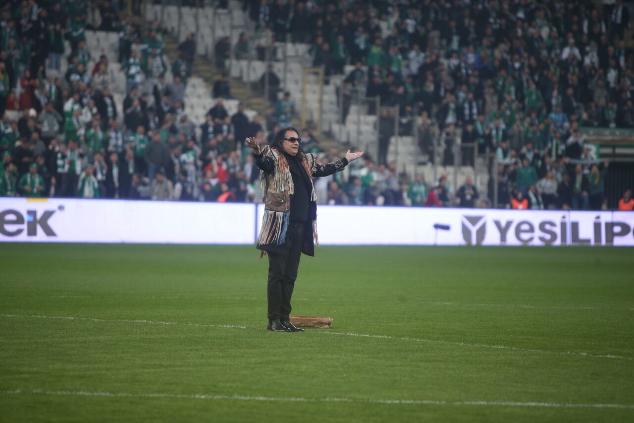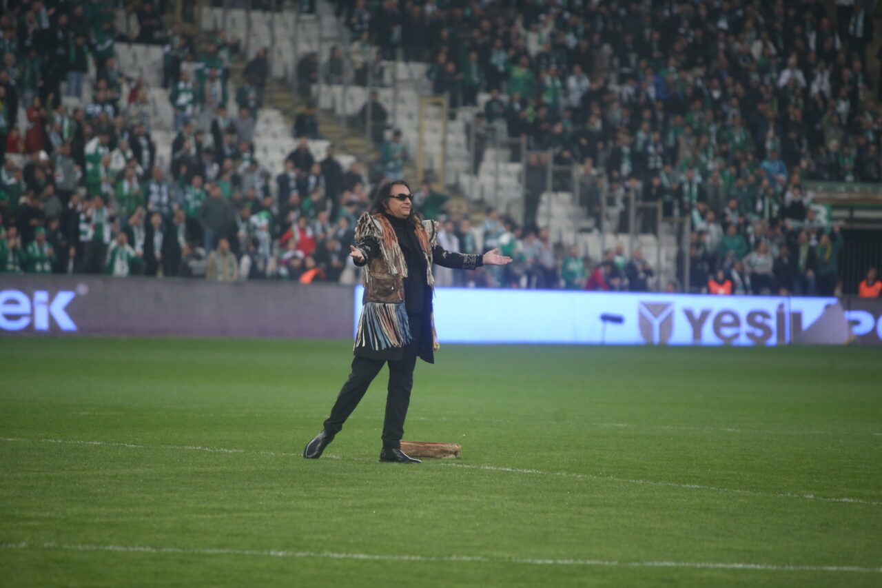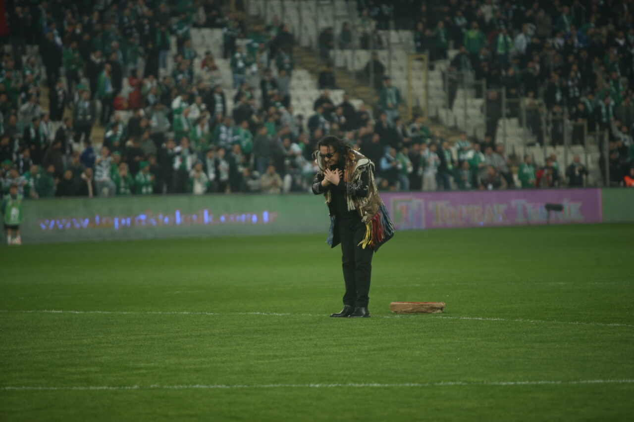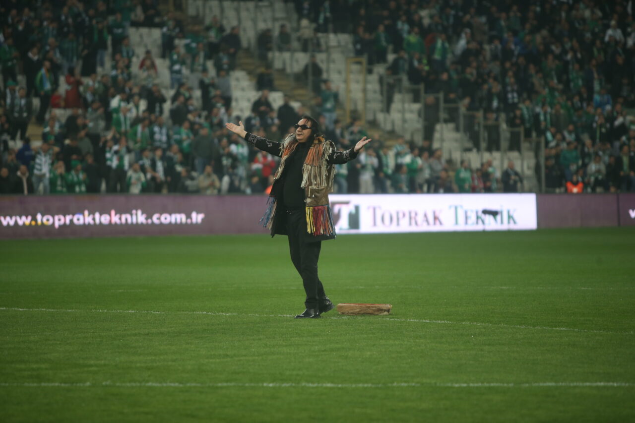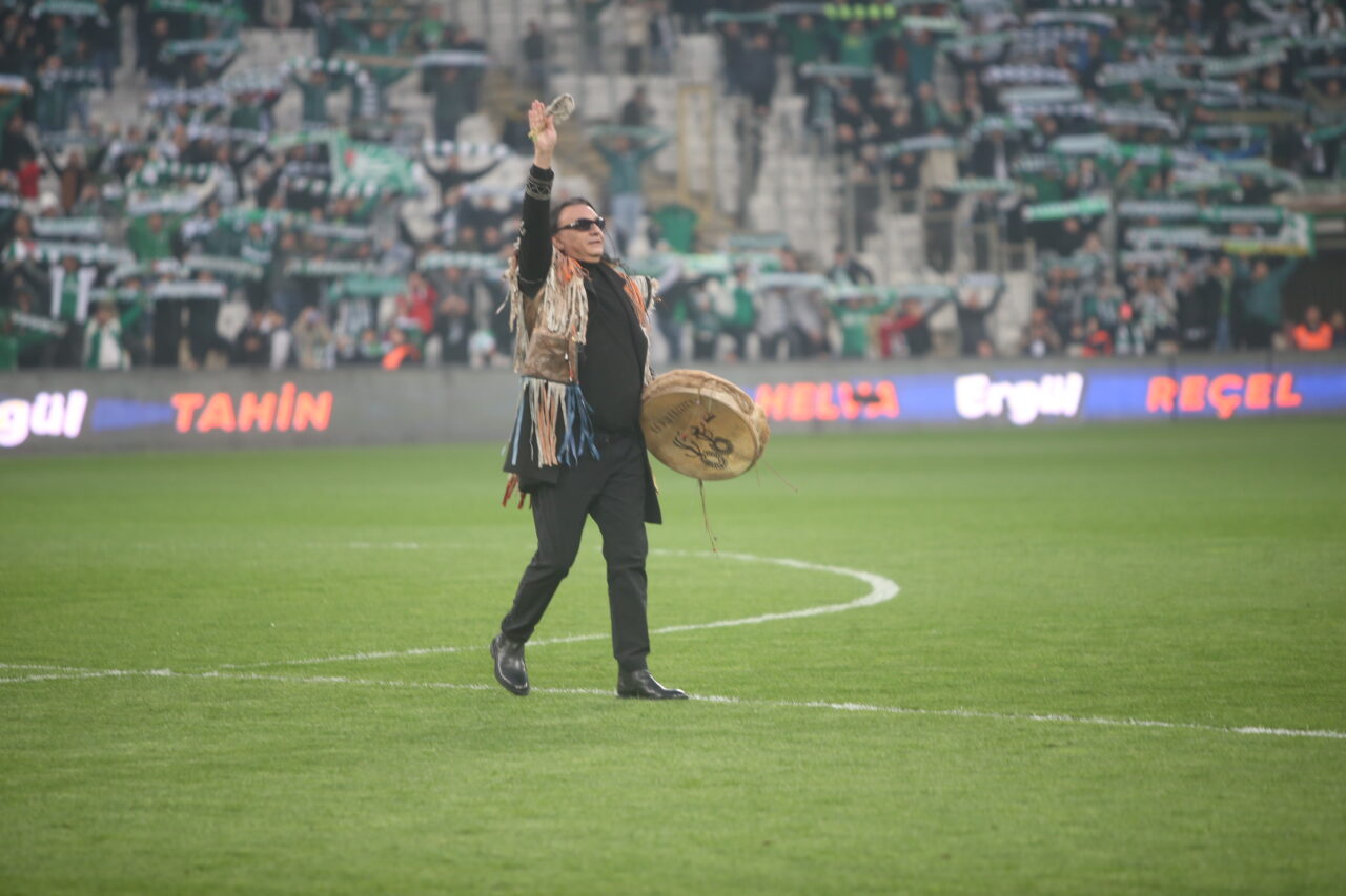 Efsane olan eserini Bursasporlu taraftarların huzurunda kam davuluyla bir kez daha çalan Kırdar’a, 42 bin civarında yeşil beyaz sevdası büyük ilgi gösterdi.
