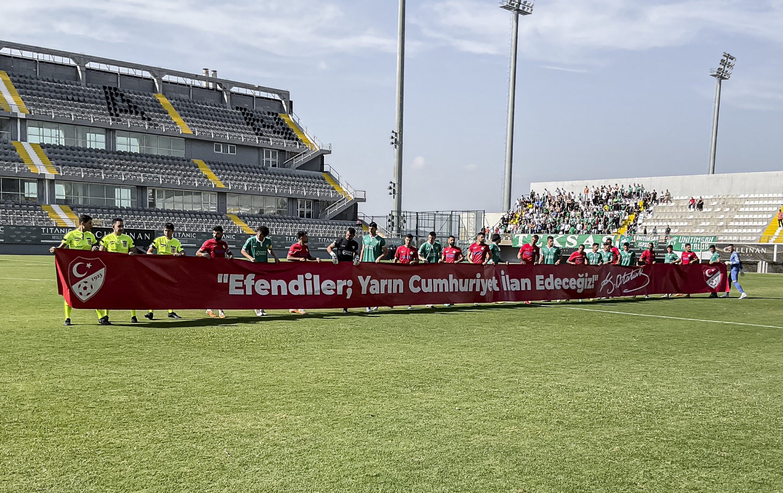 Serik Belediyespor-Bursaspor maçı öncesinde iki takım ve maçın hakemleri sahaya TFF’nin hazırladığı ve üzerinde Türkiye Cumhuriyeti’nin kurucusu Mustafa Kemal Atatürk’ün “Efendiler, yarın Cumhuriyet ilan edeceğiz” sözünün yazılı olduğu pankartla çıktı. Bu hareket tribünde yer alan taraftarlarca alkışlandı.