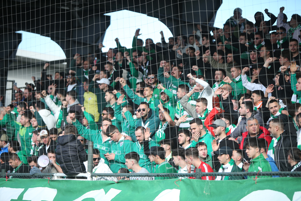 Bursasporlu taraftarlar Arnavutköy Belediyespor maçında tribünde şov yaptı Yeşil beyaz sevdalıları, Bolluca Stadı’nda kendilerine ayrılan yer doldururken yaklaşık 500 taraftar, yaptıkları tezahüratlarla takıma büyük destek verdi. Stadyuma giremeyen taraftarlar ise mücadeleyi çatıdan ve buldukları yüksek yerlerden takip etmeye çalıştı.