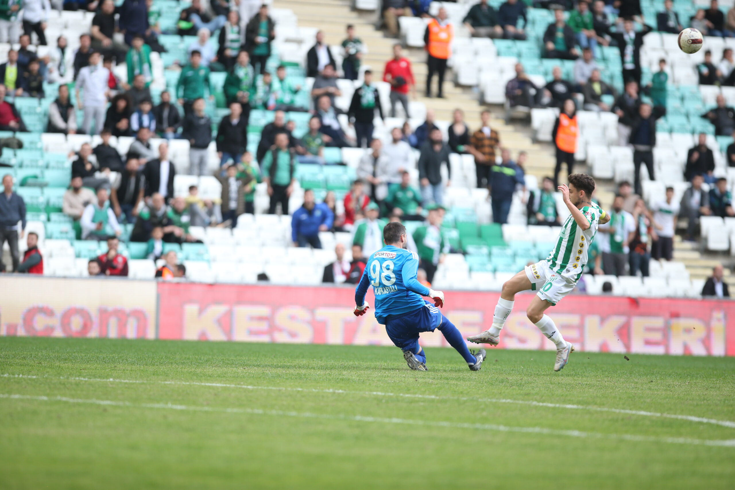 Yüzüncü Yıl Atatürk Stadı’nda oynanan Bursaspor-Esenler Erokspor maçına ilgi yine azdı. Bursasporlu taraftarlar karşılaşmaya fazla ilgi göstermezken 2 bin civarında yeşil beyazlı taraftar, maçı yerinde takip etti.