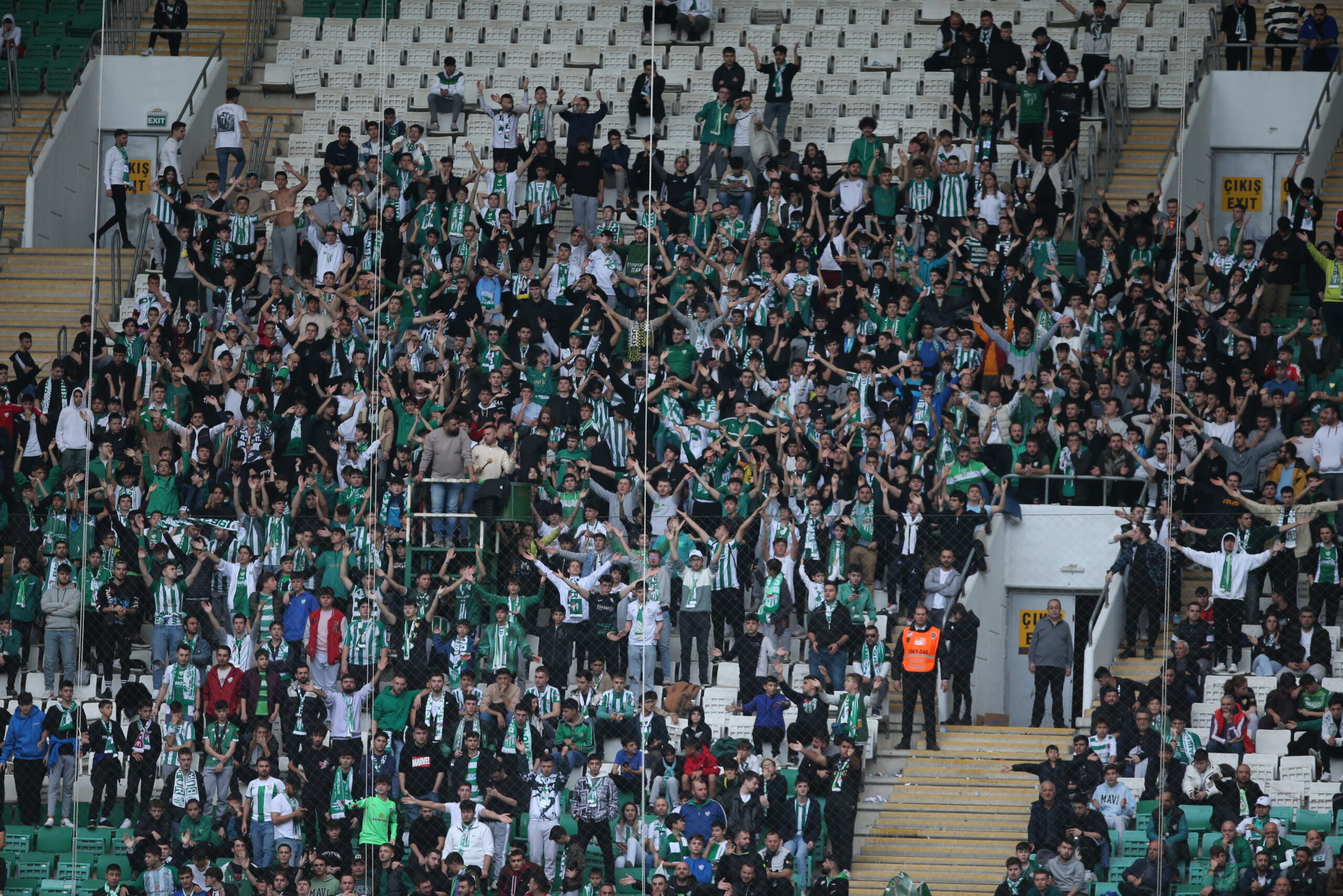 Yüzüncü Yıl Atatürk Stadı’nda oynanan mücadelede Bursasporlu taraftarlar takımlarına destek verdi. Oyuncuları 90 dakika pozitif anlamda destekleyen yeşil beyaz sevdalıları, zaman zaman da Başkan Recep Günay ve yönetimini istifaya davet etti. Taraftarlar, oyuncuları gösterdikleri mücadele ve performanstan dolayı alkışla sahadan uğurladı.