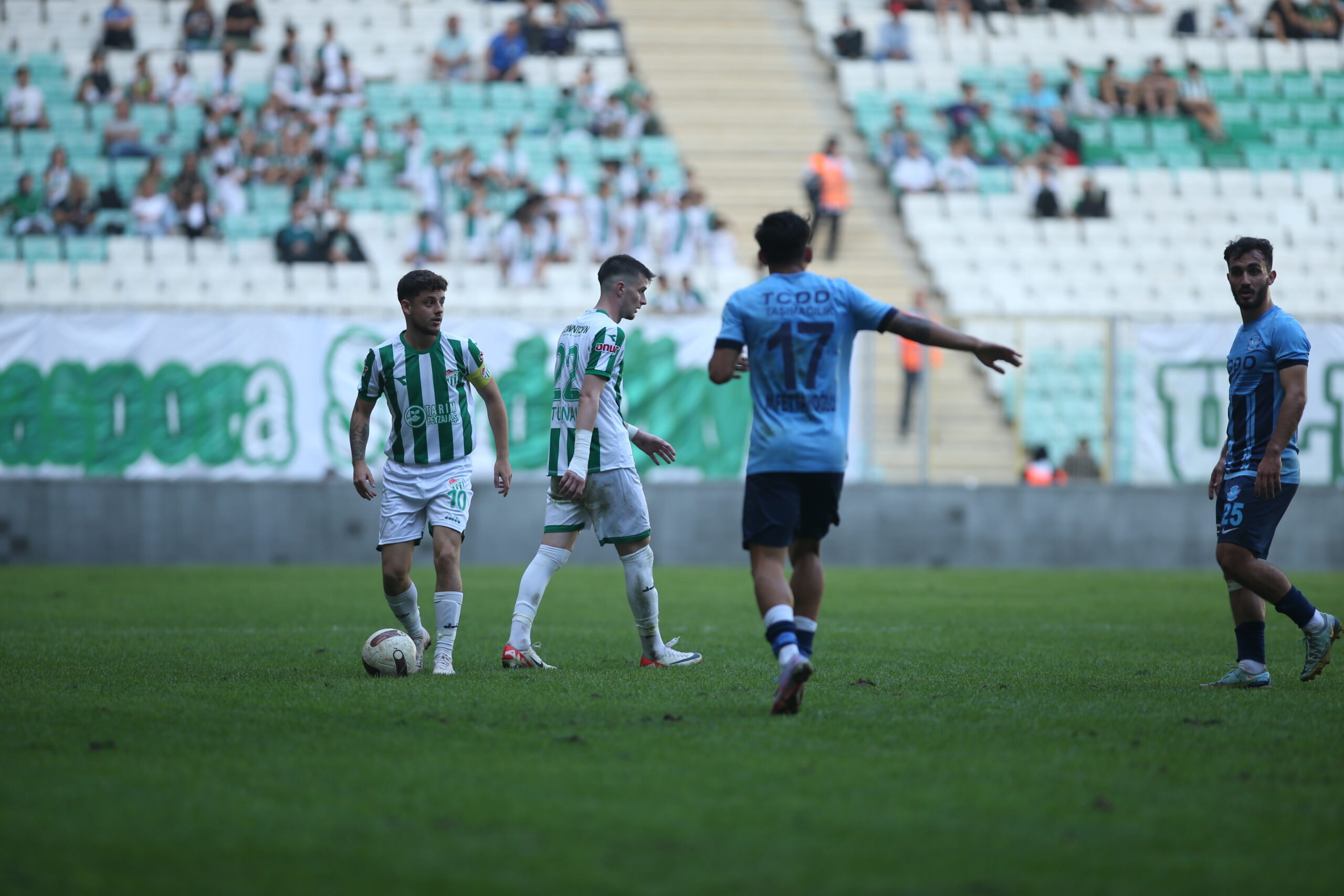 Bursaspor’da sakatlığı nedeniyle hafta içindeki antrenmanlara çıkamayan Çağatay Yılmaz, maçta sakat sakat oynadı. Takımın geriye düşmesinin ardından Nedim Vatansever, 65.dakikada Emre Tepegöz’ün yerine 23 yaşındaki futbolcuyu dahil etti.