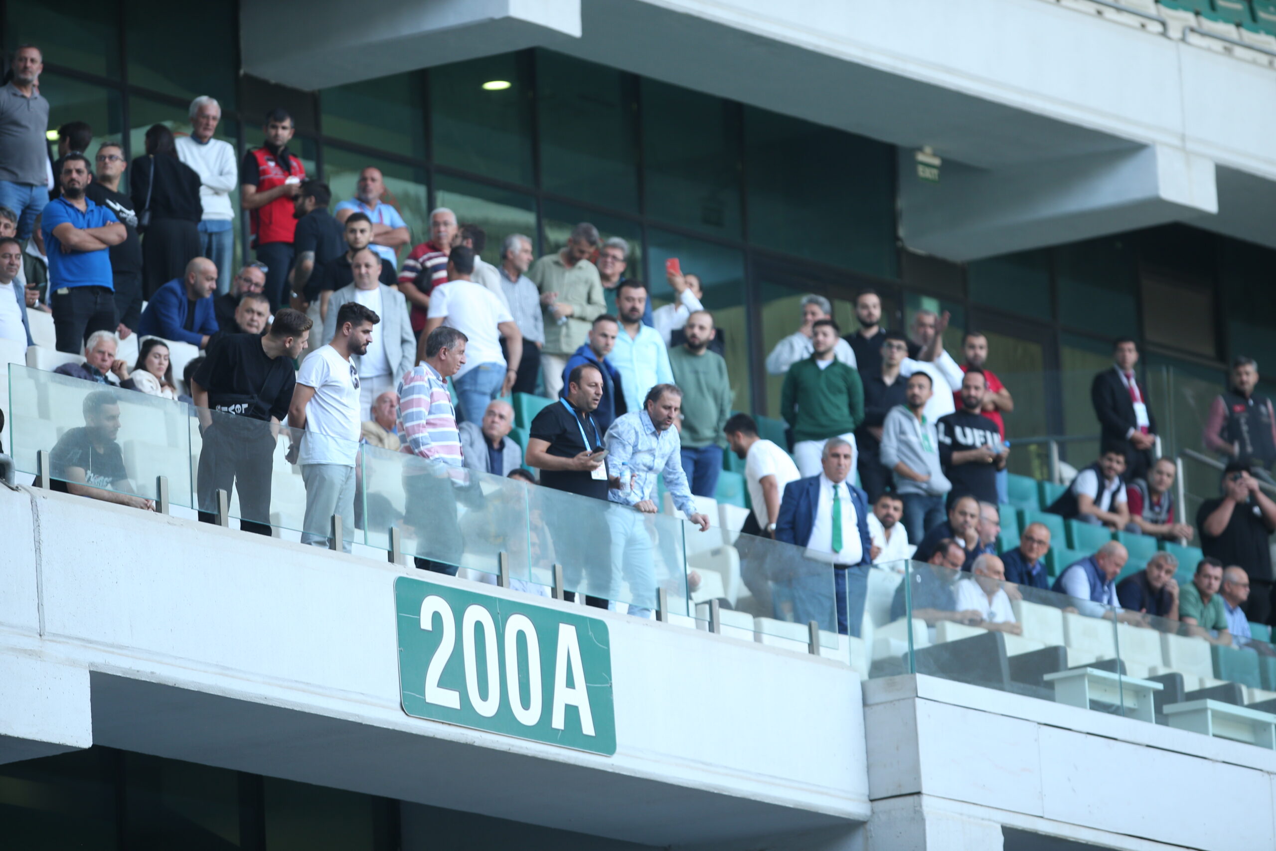 Yeşil beyazlı taraftarlar, yaptıkları tezahüratlarla yönetimi istifaya davet ederken, “yönetim istifa” ve “Recep gol gol” sesleri çokça yükseldi. Maçın sonlarına doğru Teksas tribünü ile Batı Alt Tribünü’deki küçük bir grup arasında sözlü tartışma yaşandı.