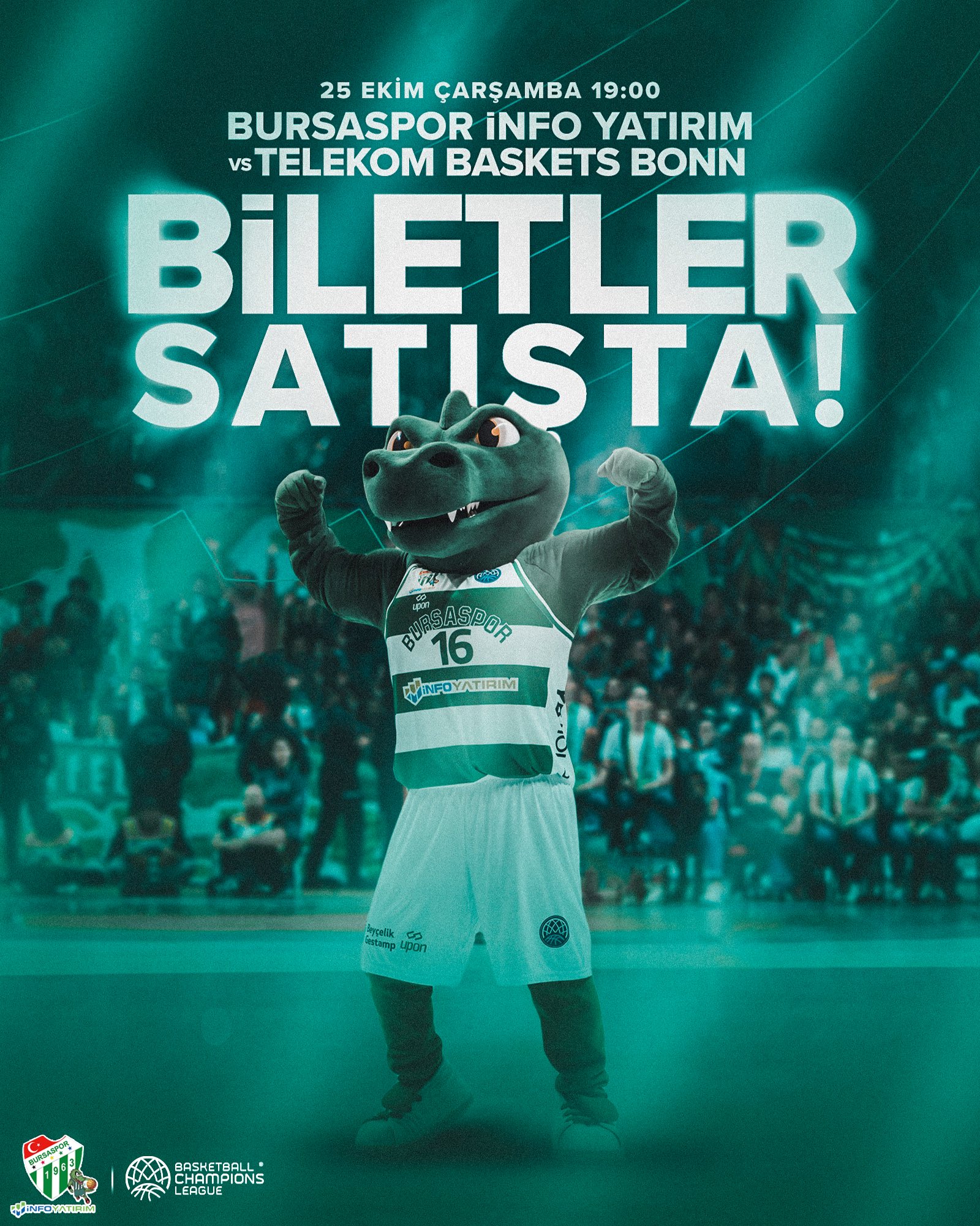 Bursaspor İnfo Yatırım’ın, Basketbol Şampiyonlar Ligi F Grubu 2. haftasında yarın saat 19.00’da Nilüfer Tofaş Spor Salonu’nda turnuvanın son şampiyonu Telekom Baskets Bonn ile oynayacağı maçın biletler satışa çıktı.