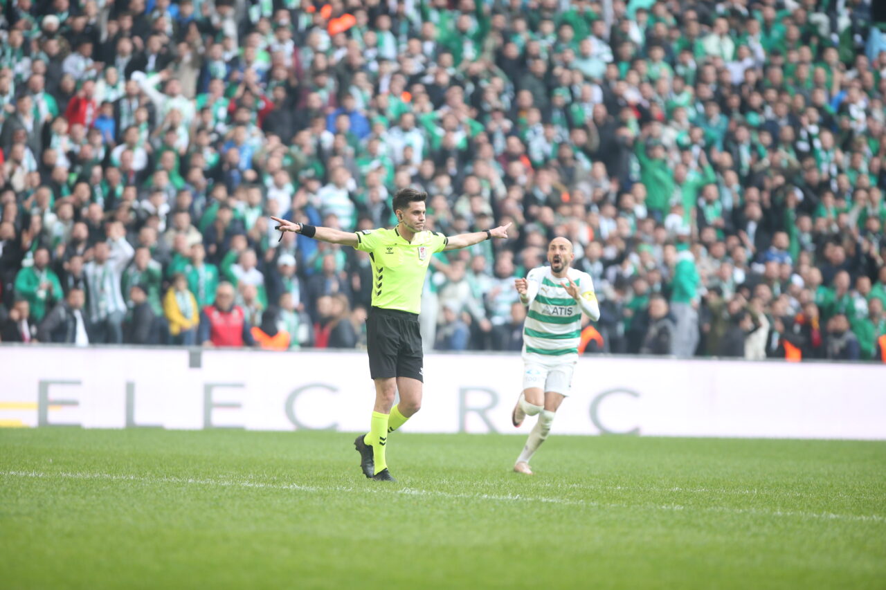 Bursaspor-Karşıyaka maçı 0-0 beraber biterken tartışmalı bir pozisyon ve karar ise dikkat çekti…