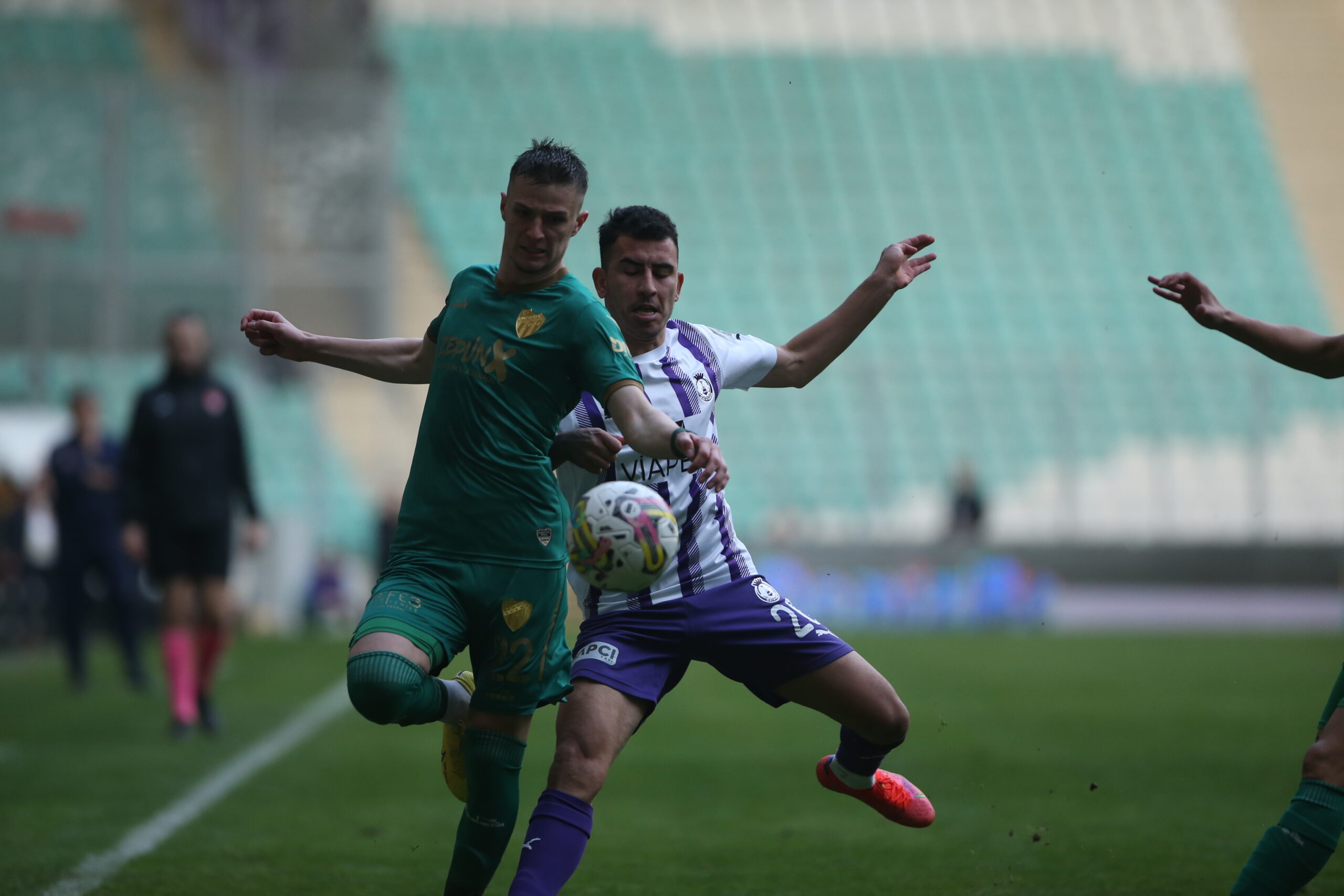 TFF 2.Lig Beyaz Grup’ta çok kötü bir ilk devre geçiren ve 18 puanla düşme hattında kalan Bursaspor, yeni yılın ilk mücadelesinde Afyonspor karşısında galibiyeti koruyamayınca bir puana mahkum oldu. 6 dakikalık uzatmaya rağmen 90+7’de yenen beraberlik golüyle yıkılan yeşil beyazlılar, ilk kez TFF 2.Lig’de maç yöneten Manisa Bölgesi hakemi Yunus Emre Çakar’a büyük tepki gösterse de kaybedilen 2 puan Bursaspor’un düşme hattından çıkmasına engel oldu.