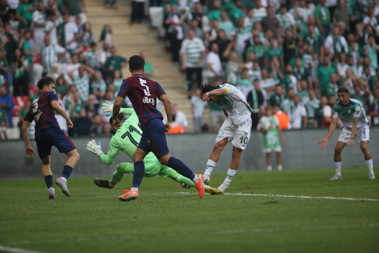 Karşılaşmayı tek golle kazanıp 2’de 2 yapan Bursaspor, zirvedeki yerini korudu.