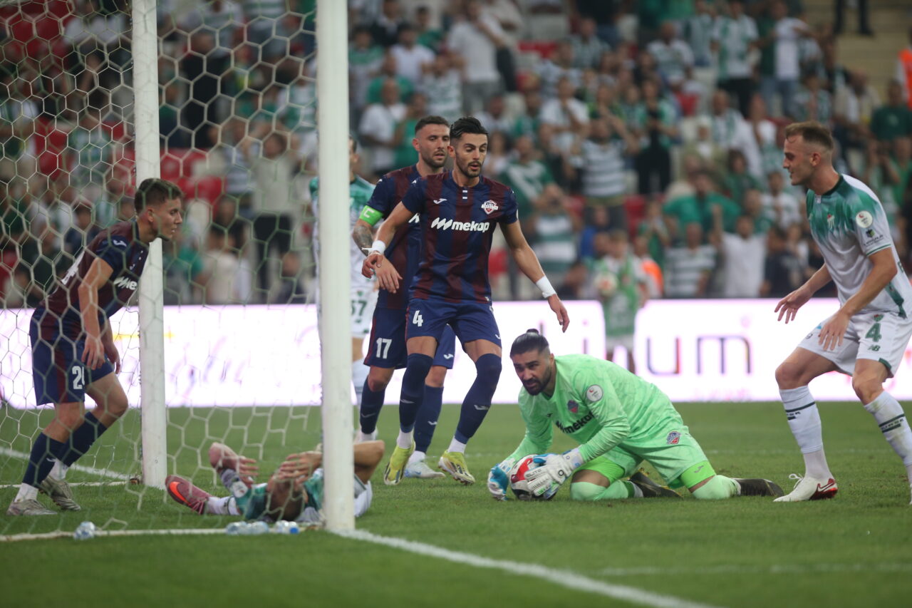 Trabzon ekibin zaman zaman tehlikeli olduğu anlarda direk ve savunmanın başarılı oyunu şok bir gole engel oldu…