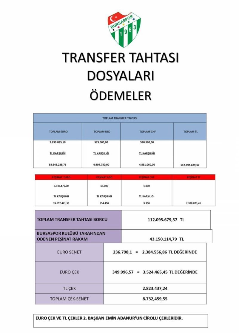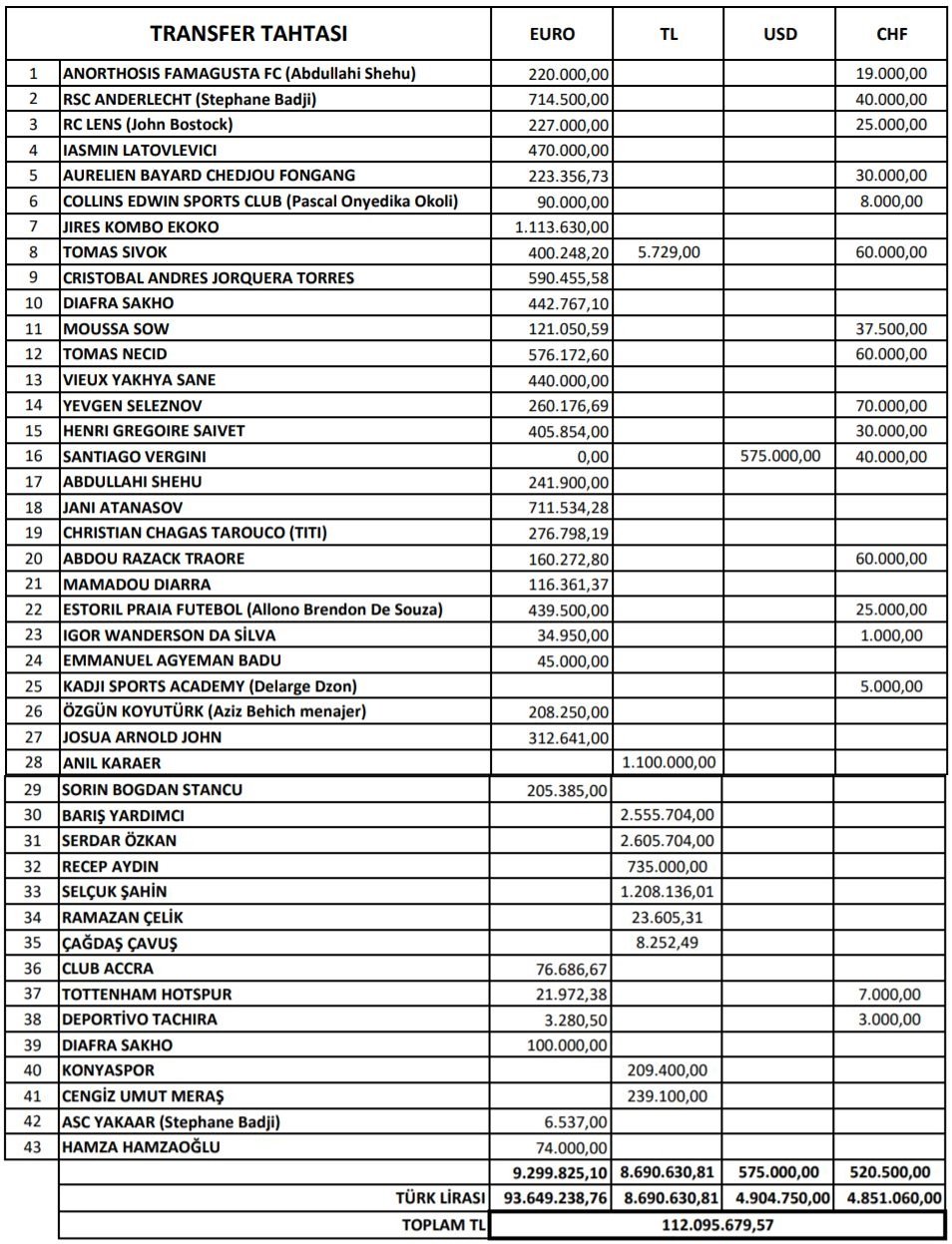 Aşağıda transfere engel dosyaların miktarları ve Kulübümüzce yapılan ödemeler gösterilmiştir.