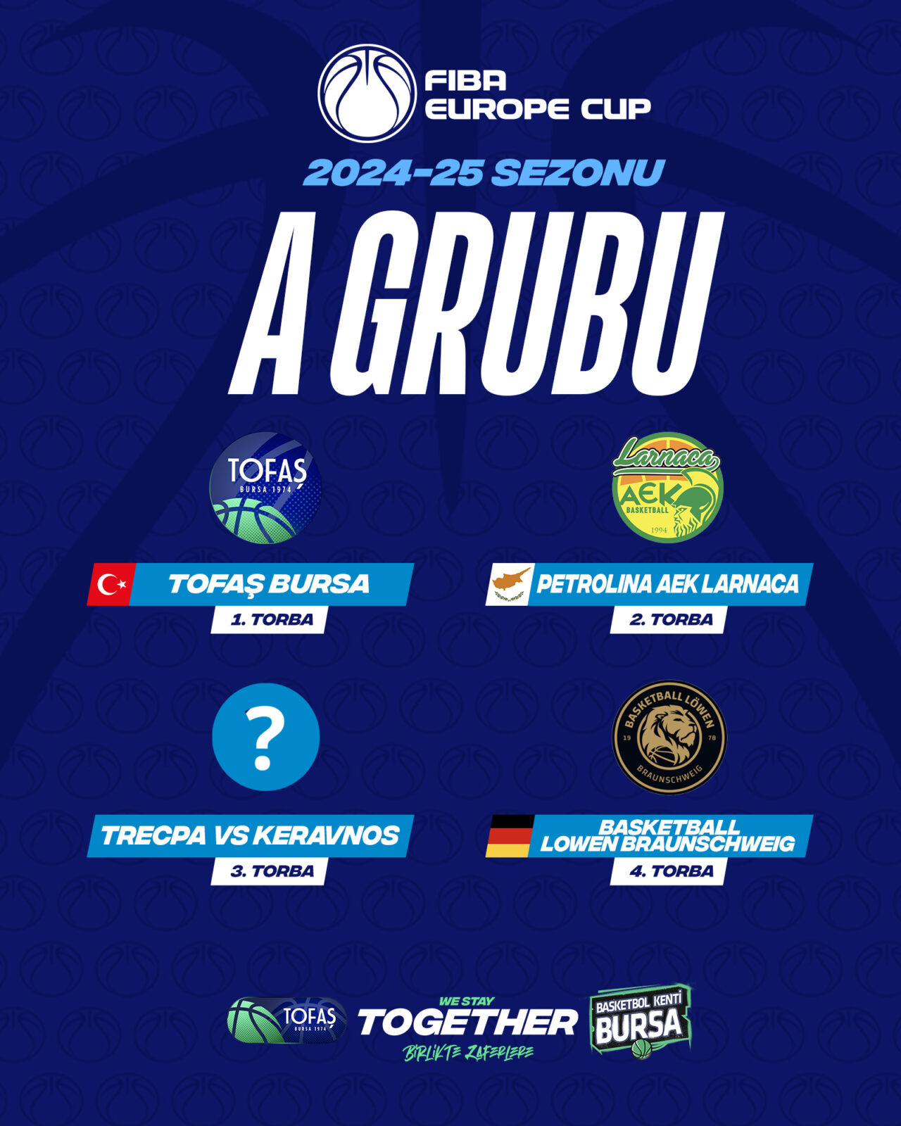 Bu sezon ülkemizi FIBA Europe Cup‘ta temsil edecek olan takımımızın kupadaki rakipleri belli oldu. B Grubunda yer alan takımımız grupta Casademont Zaragoza (İspanya), Şampiyonlar Ligi ön elemesinde yer alacak BC Kalev (Estonya) / BC Kutasi (Gürcistan) / BK Patrioti Levice (Slovakya) kulüpleri arasından bir takım ve FIBA Europ Cup ön elemesinde oynanacak Anorthosis Famagusta (Kıbrıs Rum Kesimi) – Starlites Basketball (Malta) maçının galibi ile mücadele edecek.