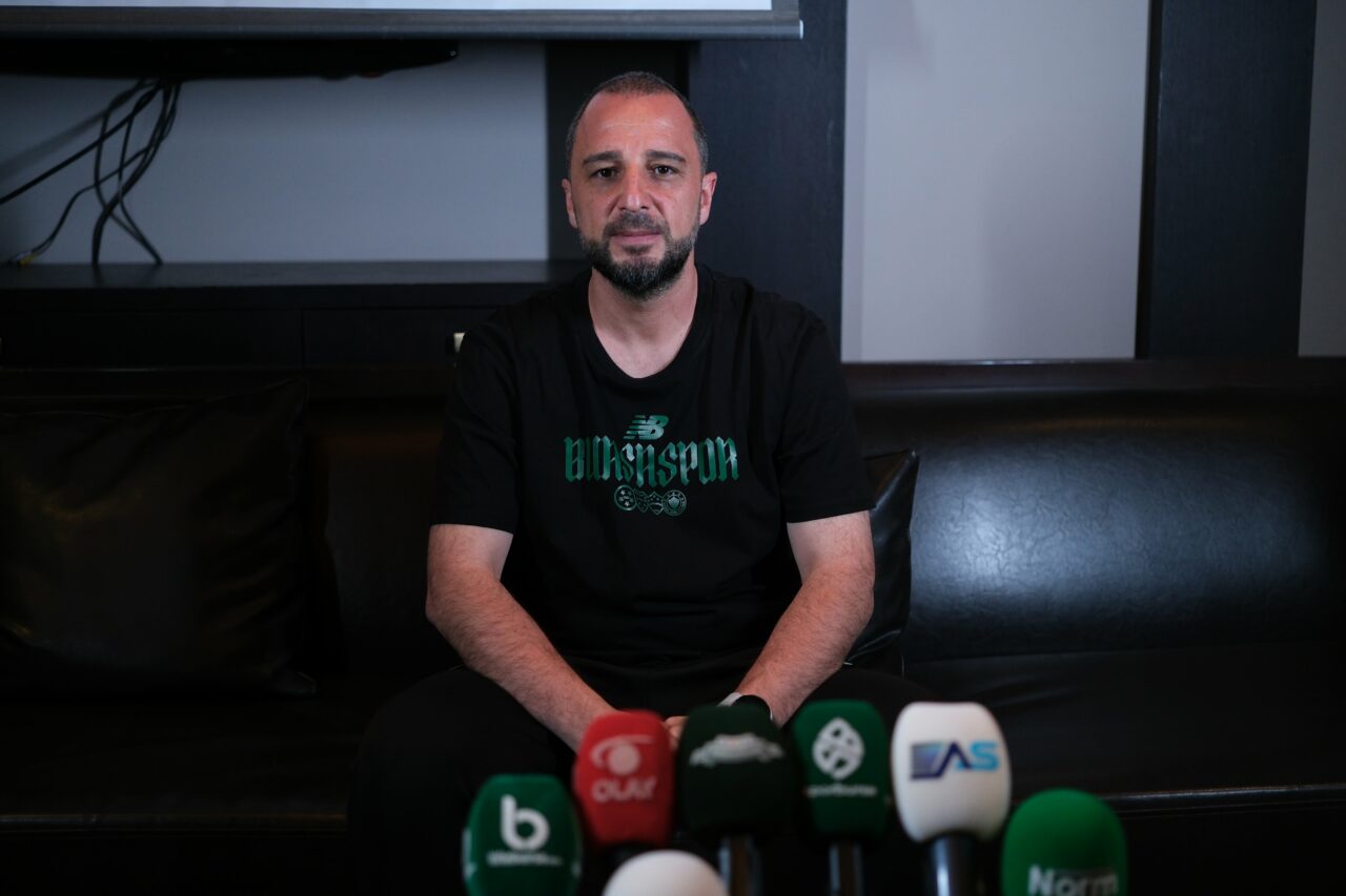 “Bazı doğrularımızdan vazgeçip nasıl kazanabiliriz hesapladık. Bu sezon taraftarımız; sürekli ön alan baskısı yapan, üretmeye, topu kazanmaya çalışan, yüreğini ortaya koymuş bir takım izleyecek. Herkes rahat olsun. Bazen, top direğe çarpar, kaleye girmez ama oyun olarak Bursa’yı tatmin edeceğiz. Motivasyonumuz çok yüksek. Bursaspor’daki taraftar baskısı bizi olumsuz yönde değil olumlu yönde motive ediyor. Biz bu baskıya alışacağız ki, ileride görev alacağımız başka takımlarda da bununla baş edebilelim.”