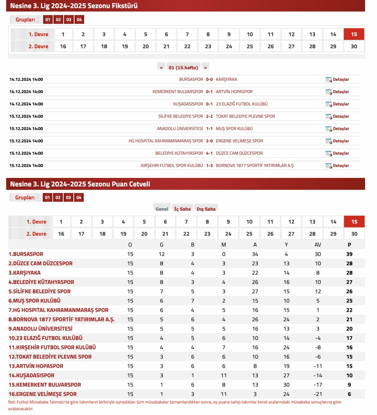 Nesine 3.Lig 1. Grup Puan Durumu için tıklayın…