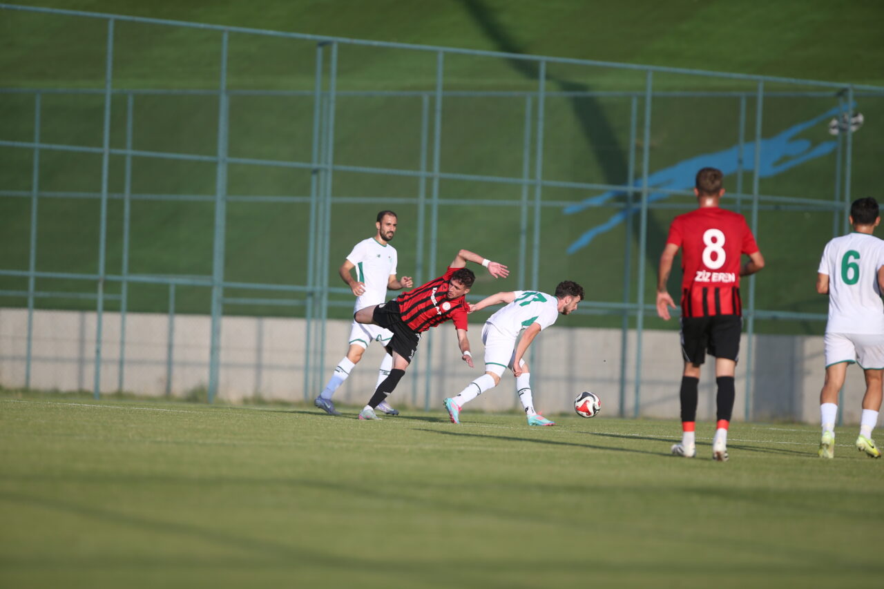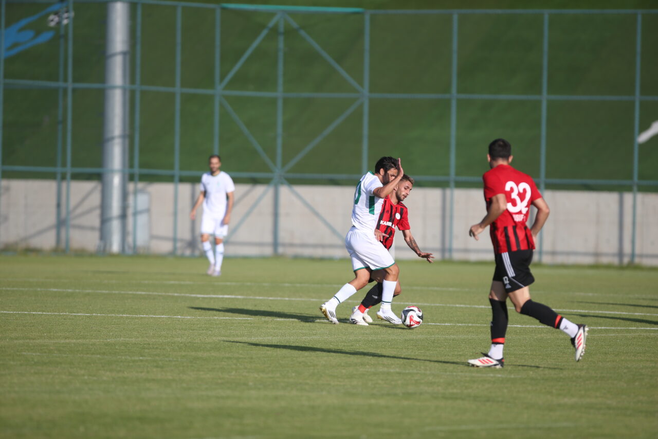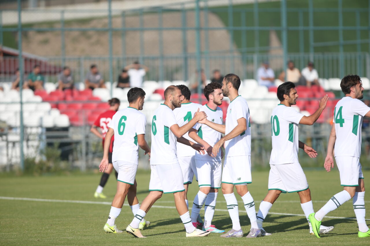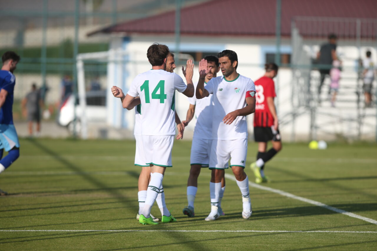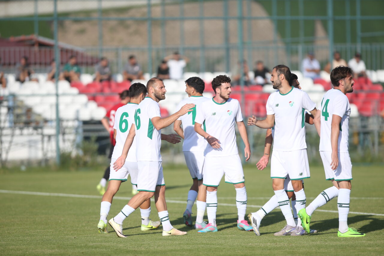 Bursaspor, Erzurum kampında dün karşılaştığı 3.Lig 2.Grup takımlarından Şanlıurfa ekibi Karaköprü Belediyespor’u 2-1 mağlup etti. Palandöken Yüksek İrtifa Kamp Merkezi’nde 9 Nolu Saha’da oynanan mücadeleye Bursaspor, Kerem Matışlı, Zeki Dursun, Batuhan Yayıkcı, Ertuğrul Ersoy, Alperen Babacan, Sefa Narin, İlhan Depe, Hakkı Türker, Sedat Cengiz, Sertaç Çam, Muhammet Demir’den oluşan 11’le çıktı. 8. dakikada İlhan Depe’nin ara pasına hareketlenen ve kaleciyi geçen Hakkı Türker’in pasında Sedat Cengiz kaydettiği golle takımını 1-0 öne geçirdi.