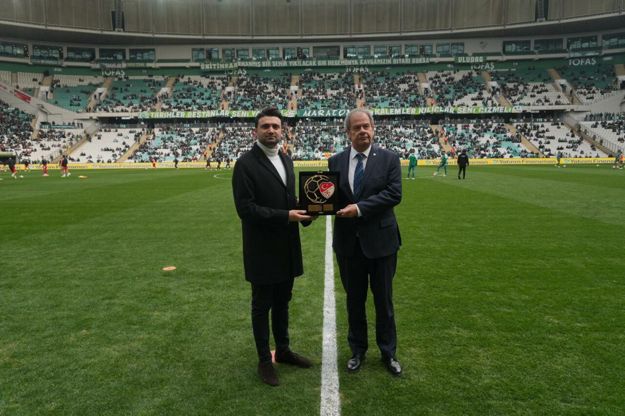 Yeşil beyazlı kulübe ödülü, 68 Aksaray maçı öncesinde verildi. TFF Fair Play ve Sosyal Sorumluluk Kurulu tarafından Bursaspor’a verilen ödülü Başkan Enes Çelik’e TFF Bursa Temsilcisi Atilla Dönmez takdim etti.