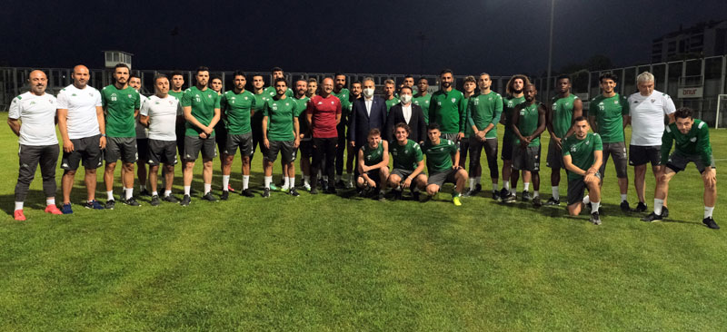 Bursaspor’un 3 hafta önce yeni bir heyecanla tekrar çıkışa geçtiğini söyleyen Büyükşehir Belediye Başkanı Alinur Aktaş, teknik direktör İrfan Buz’u, ekibini ve futbolcuları tebrik etti. Şehrin belediye başkanı olarak ve Bursasporlu bir taraftar olarak takımın Süper Lig’e çıkacağına inandığını belirten Başkan Aktaş, kalan son 2 maçı kazanacaklarına, diğer maçların da Bursaspor’un yararına sonuçlanacağına inandığını kaydetti. Bursasporlu futbolcuların bu zamana kadar çok kritik maçlar aldığını, dönüşler yaptığını ve üstün gayret gösterdiğini ifade eden Başkan Aktaş, takımın kalan maçlarda da bunu yapabilecek güce sahip olduğunu vurguladı. Bursaspor’un zor zamanlardan geçerek bu günlere geldiğini anlatan Başkan Aktaş, “Yönetim bir çabası ve gayreti var. Bizlerin şehir olarak onlara destekleri var. Yaşadığımız pandemi süreci dolayısıyla ticaretin içerisinde bulunduğu seyir de bu süreci kesintiye uğrattı. Burası Bursaspor. Bursaspor’da kimsenin alacağı kalmaz. İnşallah bizler de kalan maçlarla alakalı prim sürecine destek vereceğiz. Bursa Ticaret ve Sanayi Odamız kısa bir süre önce rakam açıkladı. Onun üzerine 2 milyon TL de şampiyonluk halinde biz ekleyelim. Bütün işadamlarından, kurum ve kuruluşlardan şampiyonluk primi için destek bekliyoruz. Bu rakam giderek artacaktır. Siz yeter ki o hedefe ulaşın” dedi.