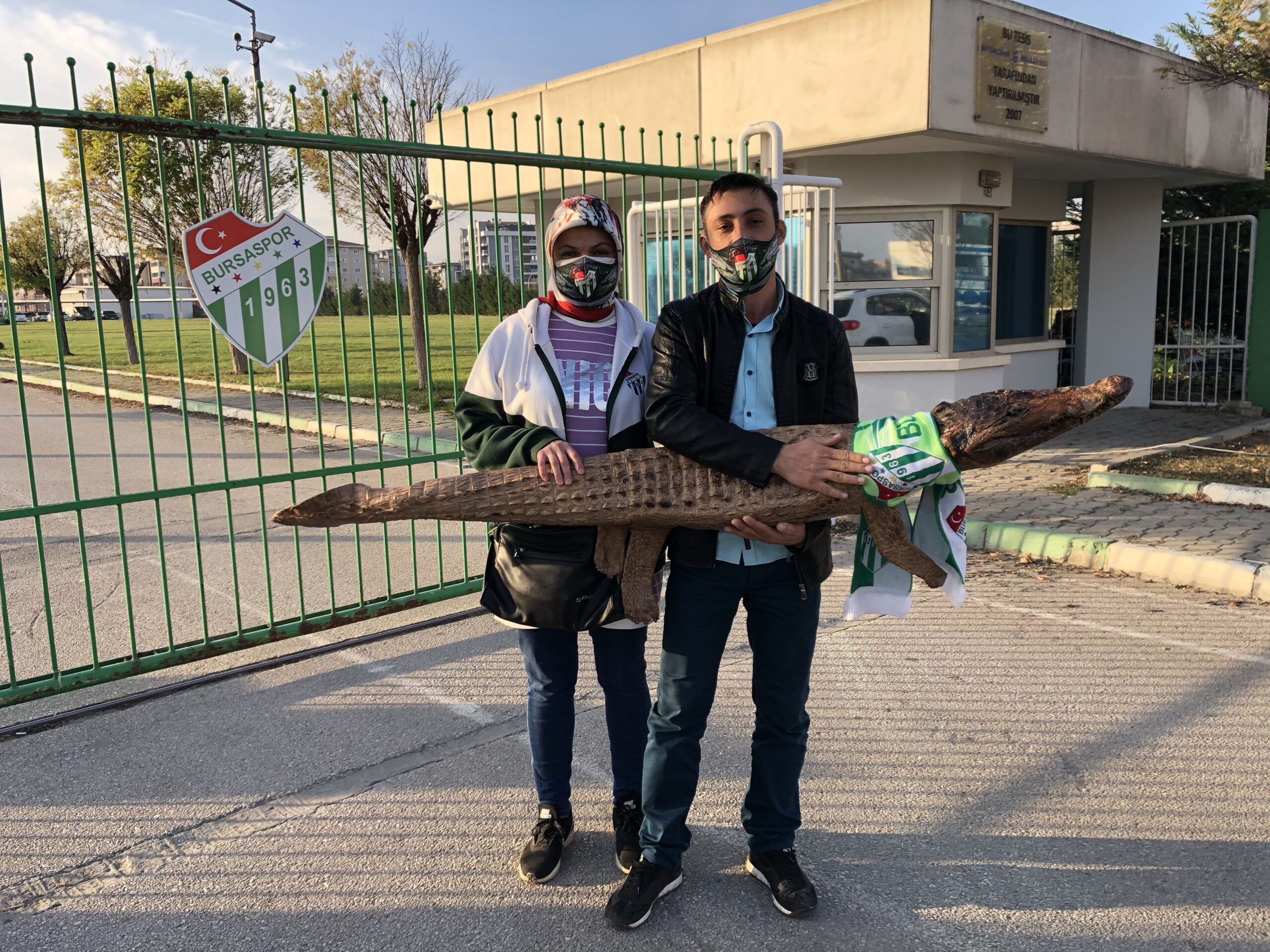 Pandemi sebebiyle içeriye alınmayan taraftar, Bursaspor’un simgesi olan timsahı ve yeşil-beyazlı takıma olan sevgisini şu sözlerle anlattı: