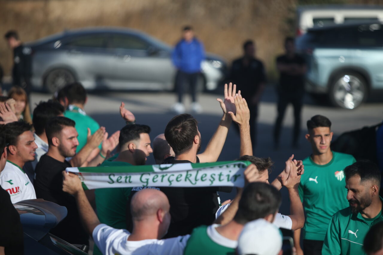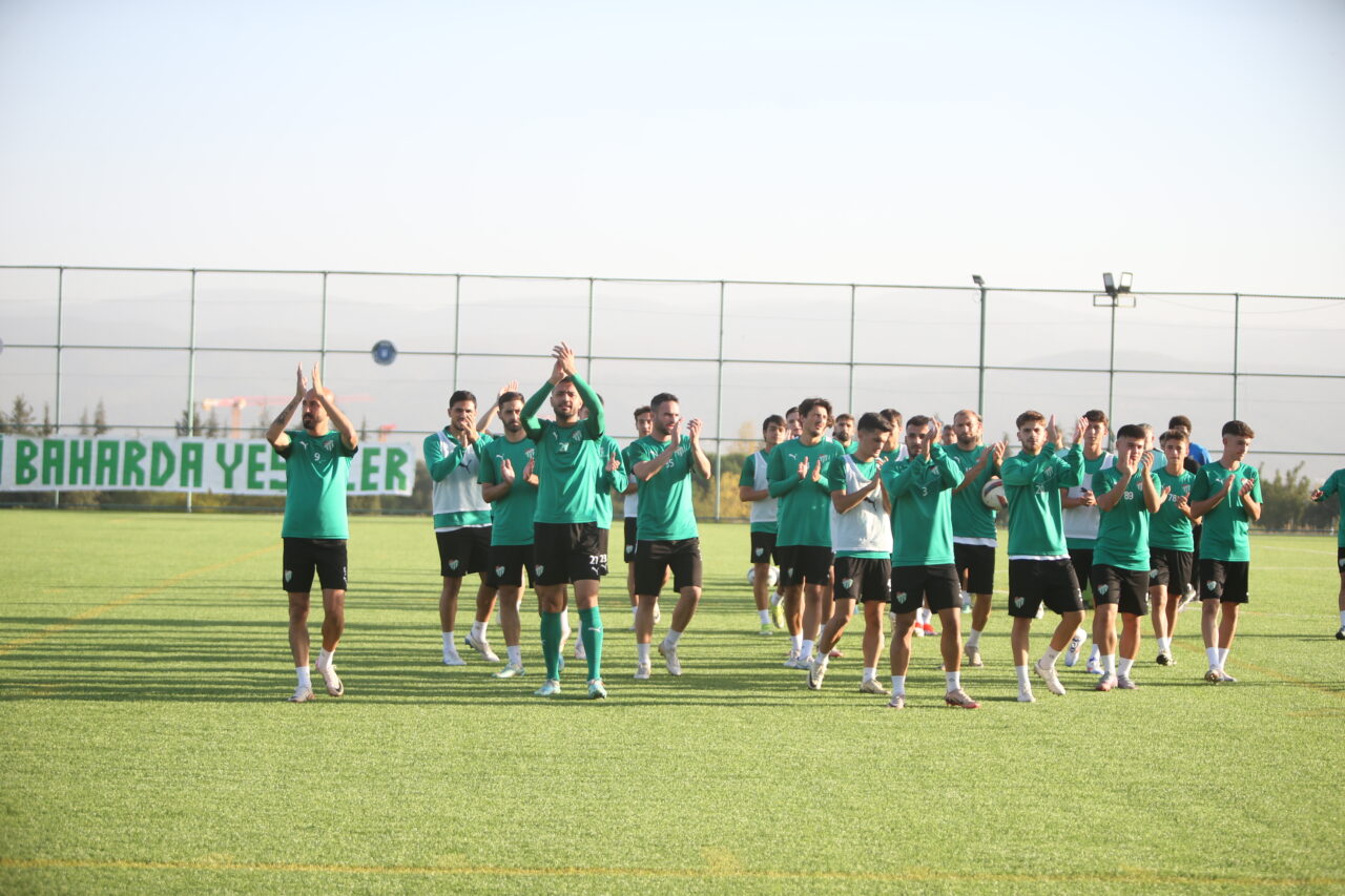 Yüzlerce yeşil beyaz sevdalısı, Uludağ Üniversitesi’nde yapılan antrenmanı izlerken zorlu maç öncesinde teknik heyet ve futbolculara moral verdi.