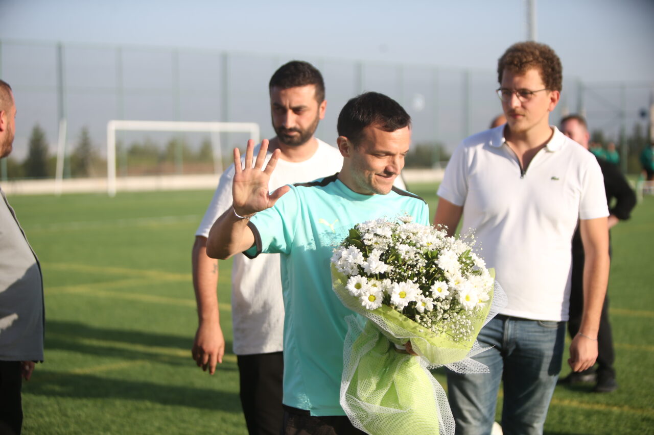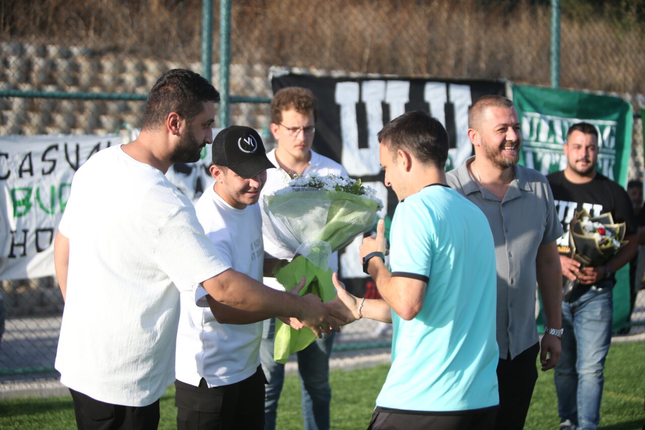 Antrenman öncesinde Ünitimsah üyeleri Teknik Direktör Pablo Martin Batalla ile takım kaptanı Ahmet İlhan Özek’e çiçek ile Ünitimsah atkısı hediye ederek başarılar diledi.