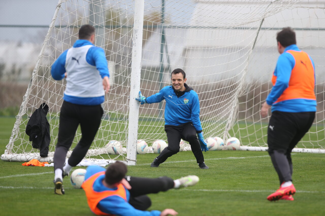 Devre arası kamp çalışmaları için Antalya’da bulunan Bursaspor’da, Pablo Martin Batalla rüzgarı esti. Arjantinli teknik adam, günün tek çalışmasında önce gol atıp asistler yaptı, ardından ise eldivenleri giyerek kaleye geçti ve hünerlerini bu kez kalede gösterdi.