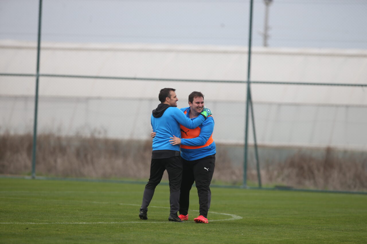 Antrenman bittikten sonra ise teknik heyet, sağlık birimi ve personeller yarı sahada çift kale maç yaptı. Futbol Şube Sorumlusu Coşkun Yavuz’un hakemliğini yaptığı mücadelede Batalla bu kez eldivenleri eline geçirerek kaleye geçti. Yaptığı kurtarışlarla kaledeki yeteneğini de konuşturan Pablo Hoca, takdirleri topladı.