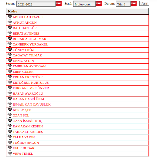 Az önce TFF’deki sayfasına eklenen son isimler; Erhan Erentürk, Ufuk Budak, Hasan Ayaroğlu ve Ozan Sol’un yanı sıra geçen sezon takımda yer alan Cüneyt Köz oldu…