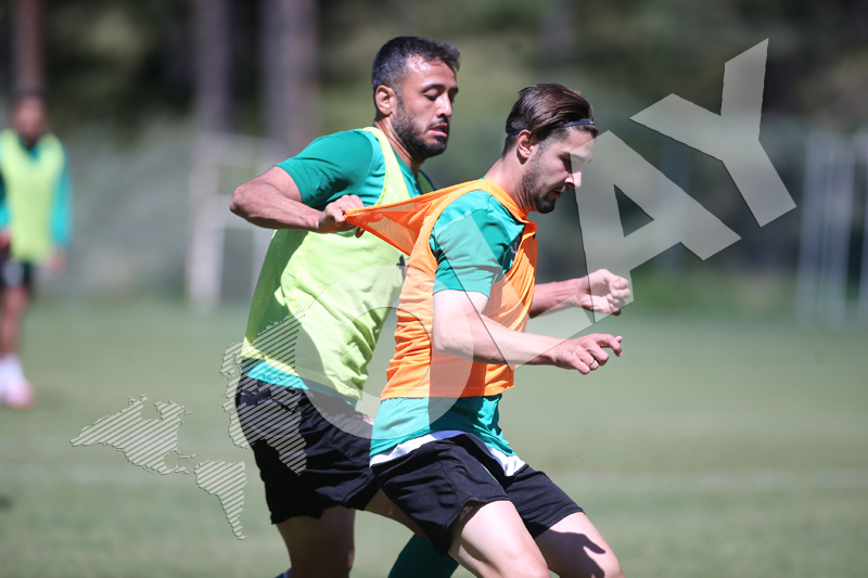 Antrenmanda pas çalışmaları yapan yeşil beyazlı oyuncular, çalışmayı 3 takım halinde oynadıkları dar alan çift kale maçlarla tamamladı.