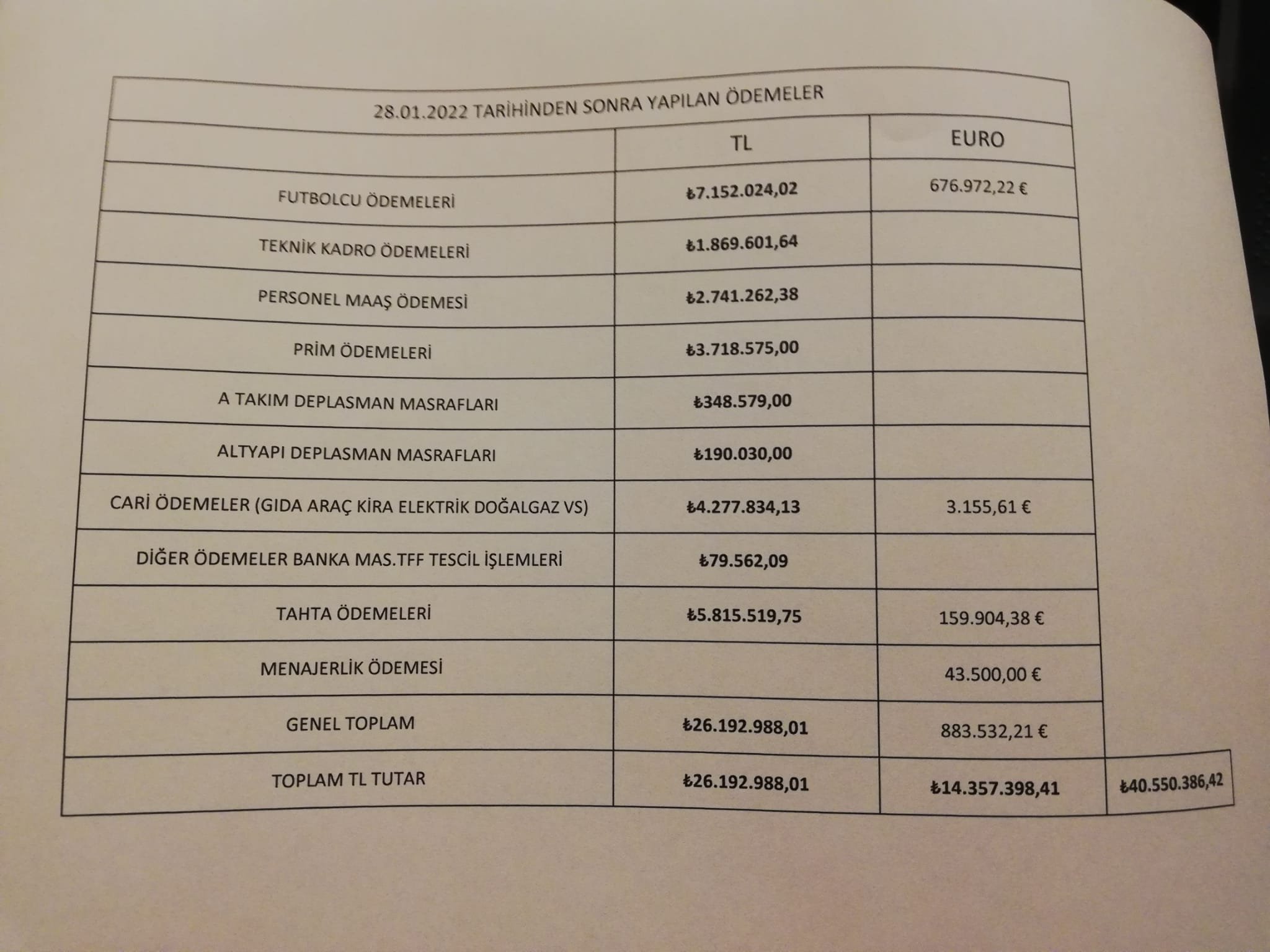 Yönetimin, 28 Ocak’tan bu yana 40 milyon lirayı aşan ödeme listesi şöyle;