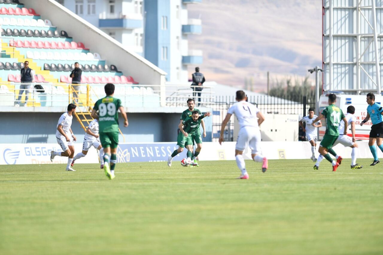32 İlhan Depe’nin soldan adrese teslim ortasında arka direkte Sertaç Çam kafayla topu ağlara gönderdi: 0-1