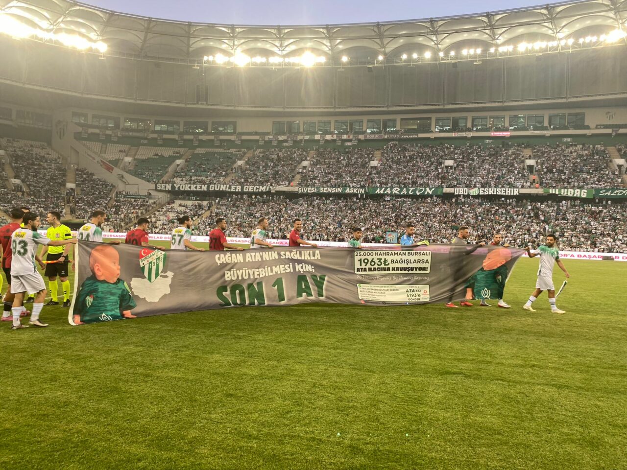 1 ay içerisinde ilaç tedavisi yapılmazsa yaşamı tehlikeye girecek minik Çağan Ata için stadyumda da destek çağısında bulunuldu. Çağan Ata, babasıyla birlikte takım fotoğrafında yer aldı.