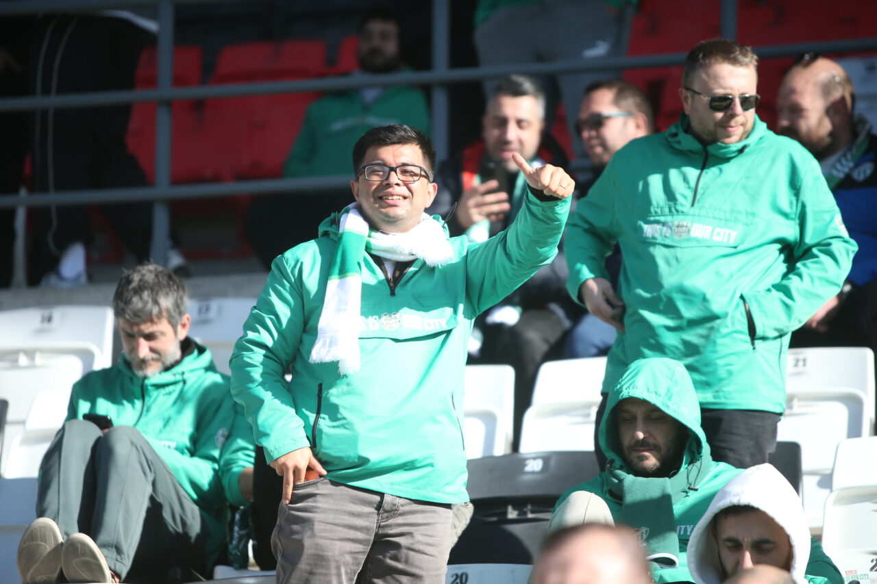 Soma’da da takımı yalnız bırakmayan yeşil beyaz sevdalıları maç boyunca desteklerini sürdürürken, galibiyeti büyük bir coşkuyla kutladılar…