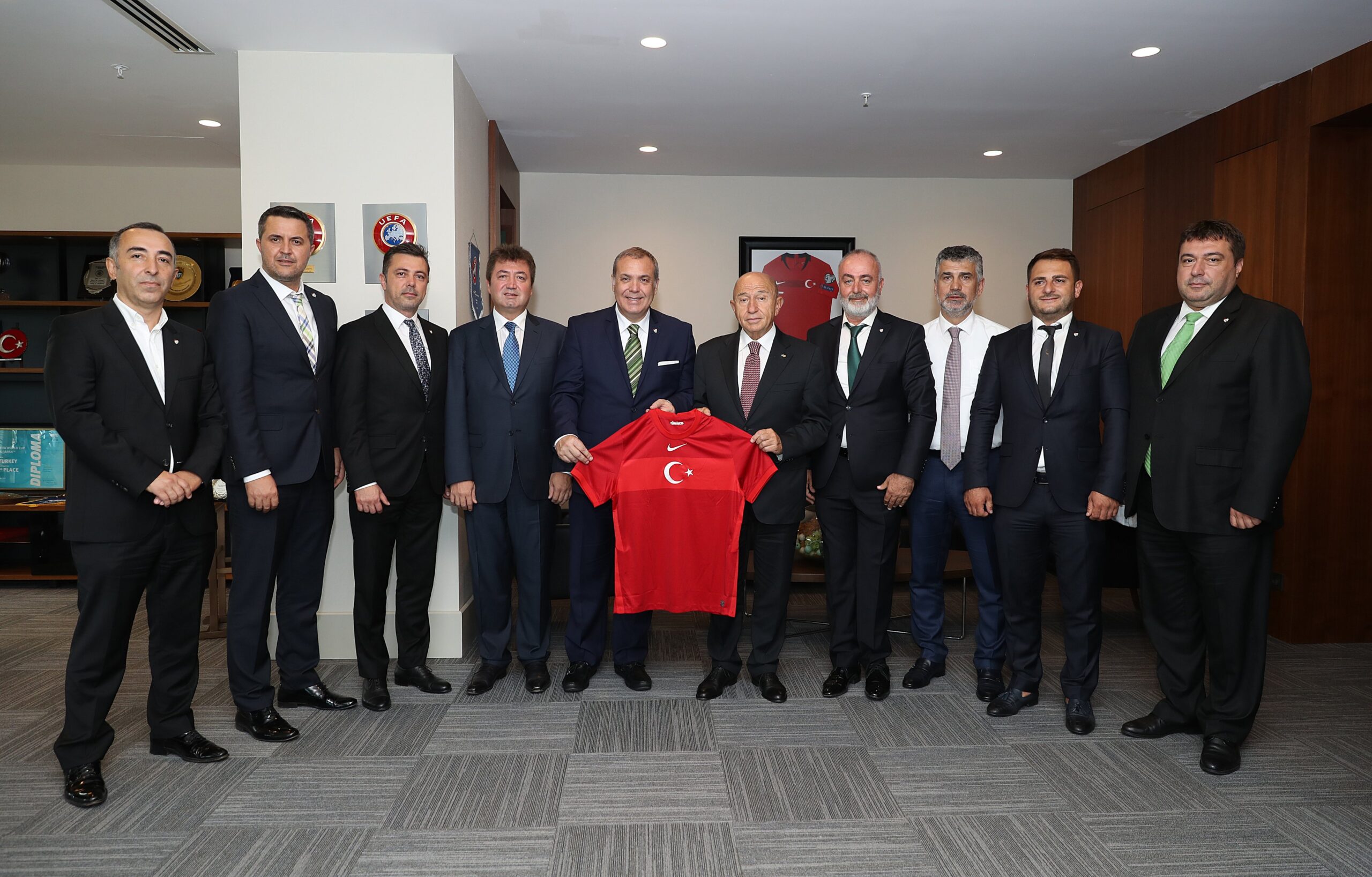 Bursaspor Kulübü Başkanı Erkan Kamat, Türkiye Futbol Federasyonu Başkanı Nihat Özdemir’e nezaket ziyaretinde bulundu. TFF’nin Riva’daki idari merkezinde gerçekleşen ziyarete, TFF Başkan Vekili İcra Kurulu Üyesi, 1. Lig, 2. Lig, 3. Lig Kulüpleri Sorumlusu Yılmaz Büyükaydın, Organizasyonlardan sorumlu TFF Yönetim Kurulu Üyesi Mustafa Çağlar ile Bursaspor Kulübü Yönetim Kurulu üyeleri katıldı.