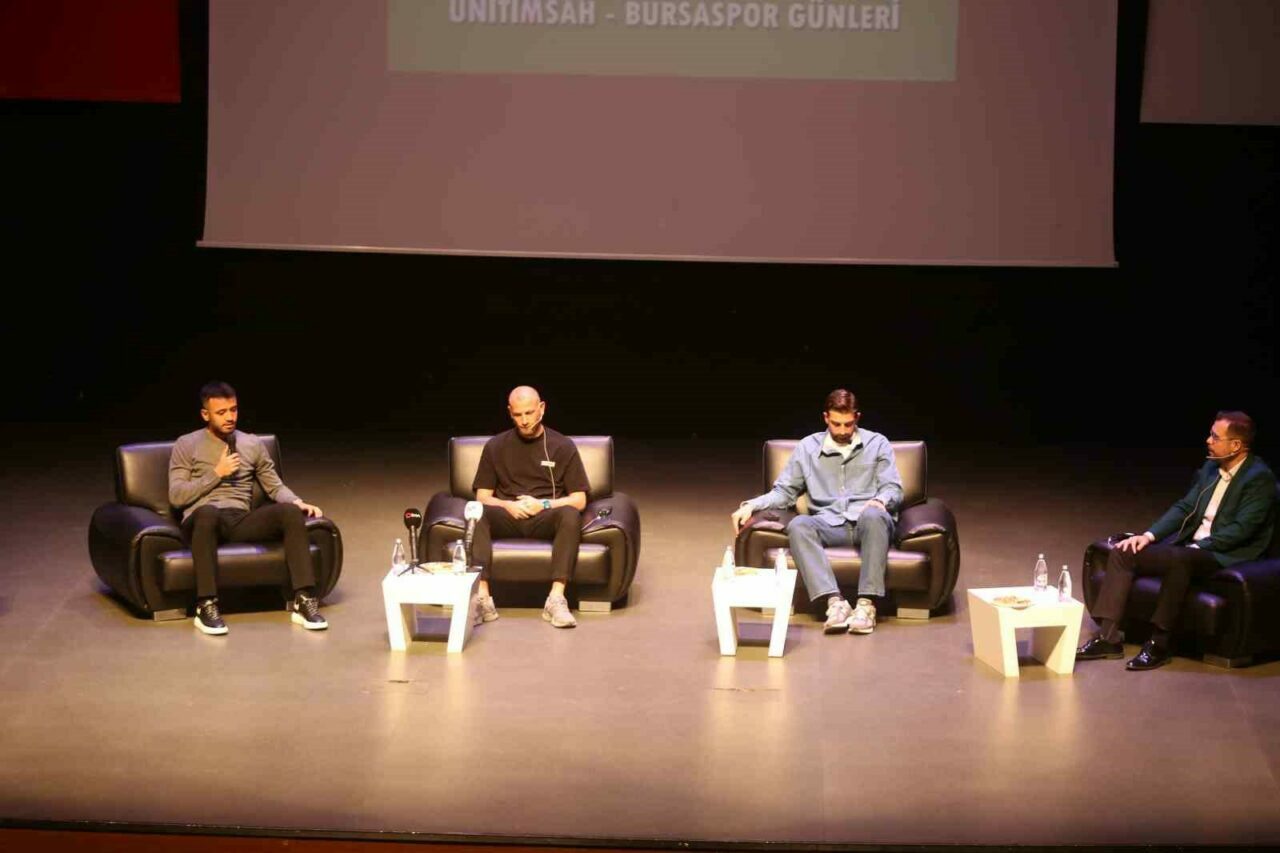 Ünitimsah grubunun hazırlamış olduğu söyleşiye birçok taraftar gelirken oyunculara merak ettiği sorular soruldu. Ünitimsah yapılanmasıyla gittiğimiz her şehirde, yüksek enerjinizle bize bütün deplasmanlarda güç katıyorsunuz diyen Bursaspor İdari Menajeri Recep Bülbül, ‘‘Bursaspor mücadelemizde hep birlikte omuz omuza güzel yarınlar yürümek için hep birlikte beraberiz ve beraber kalacağız’’ şeklinde konuştu.