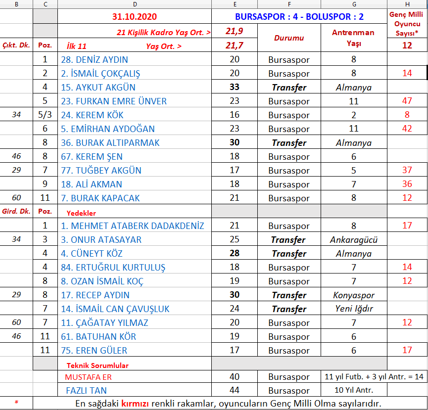 2. İlk 11’de 2 tane “ağabey” konumunda “Transfer Oyuncu” var, gerisi, yani 9 tanesi “Bursaspor Öz Kaynak Sporcusu” *****